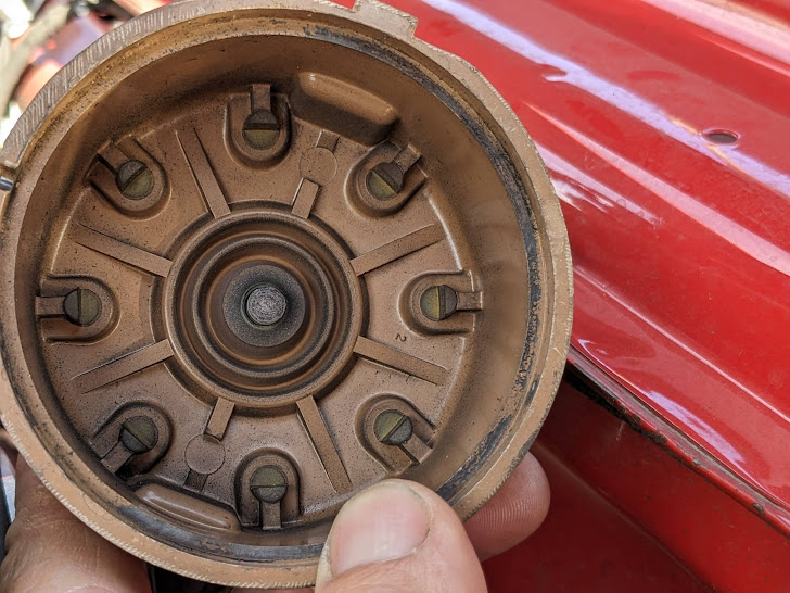 Jim, is the distributor cap button contacting the rotor properly? Almost looks like it may be getting short and arcing. Might be my eyes too....