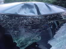 this is the result of a medium size doe getting hit at 50 mph this happened this past summer before the Rut started.We now also need to watch out for Black Bear and Moose in this area though those are rare a moose got hit 2 miles from here last fall on the interstate.for those that don't know if you see any deer at all you can bet there are more close bye bucks (Male with antlers usually)almost always cross clearings/roads AFTER the does(females) http://i32.photobucket.com/albums/d3/leonrenaud/deer%20hit/mailgooglecom6.jpg http://i32.photobucket.com/albums/d3/leonrenaud/deer hit/mailgooglecom3.jpg