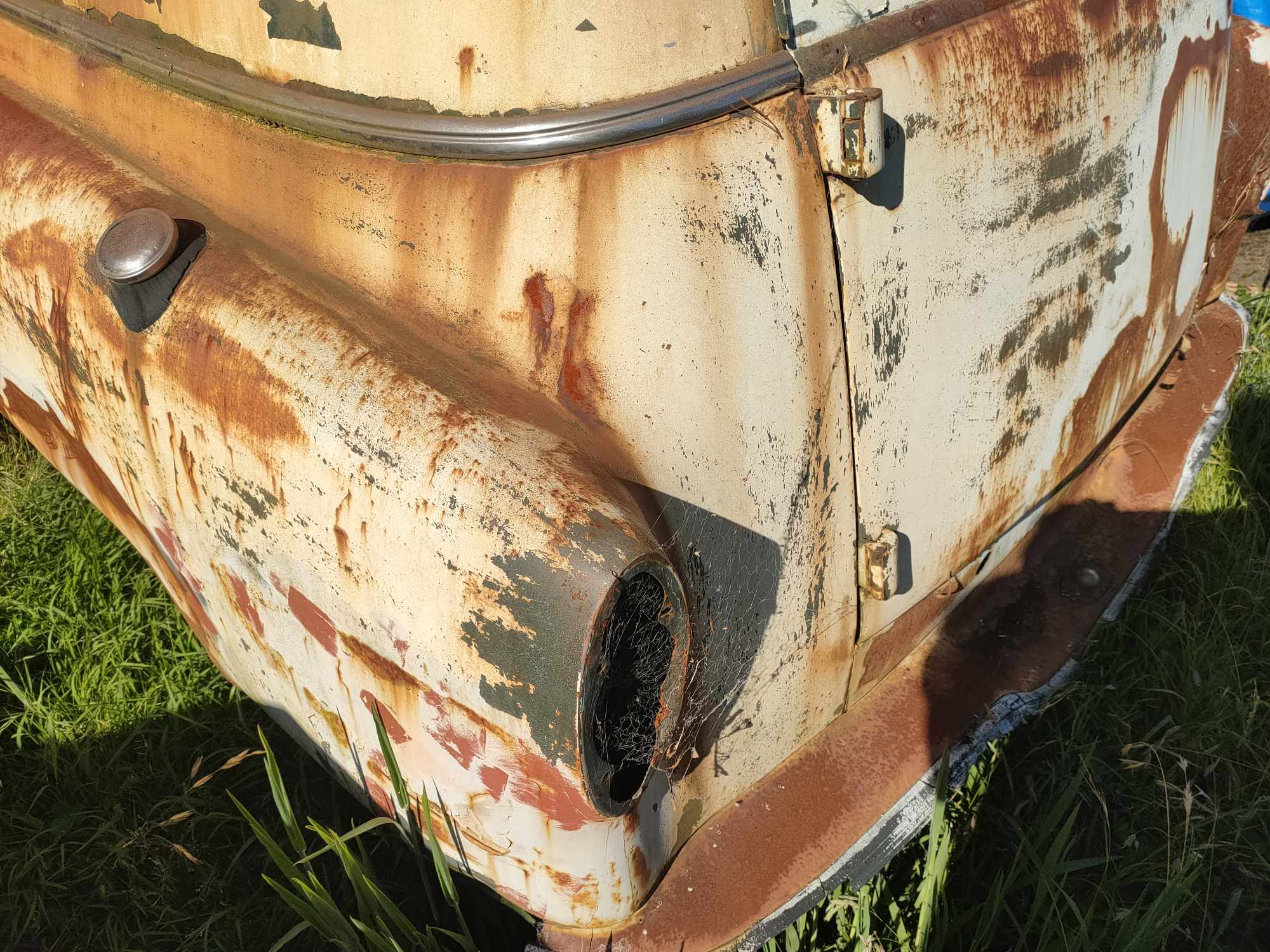 Today was a good chance for a stock take of the inventory that came in the delivery. I also spent a fair bit of time on the water blaster both inside and out, resulting in an inadvertent change in color from rusty stained white to rusty stained blue/green that was probably a factory applied coating. From all the cleaning I only found 1 little bit of cancerous rust that will require excision and replacement. Any who here is a bunch of reference shots. The door opens and closes beaut, a little wear on the hinge pins.