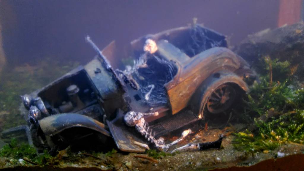 Wow...it is morning... I have been up all night finishing this one up....it's actually not done yet ..this is a shot of it before I sink it...that's the reason for the paint work on it .. I tried to make it look like it's been under water for awhile...well I will take a break then get the tank ready for the car and hopefully get it finished up and get it posted before days end...... Sent from my QTASUN1 using The H.A.M.B. mobile app