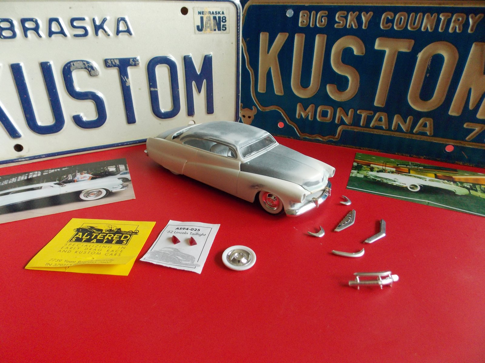 If I ever get the Hirohata version done, it would be nice to have the Running Wild combo and build a Freddie Rowe Merc. Just playing around here with the bumpers from a AMT 1/16th '55 Thunderbird kit. Wider than the Merc, I could cut out the bumper guards, splice things in to make a starting point for the custom grill with the stock "elephant ear" ends. This would also make a good starting point for a popular '51 Merc mod, a stock grill with the bumper guard hole sections filled in with more factory bars.