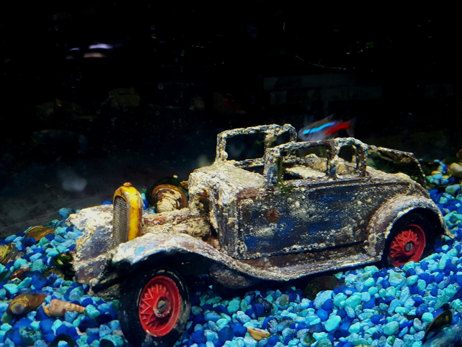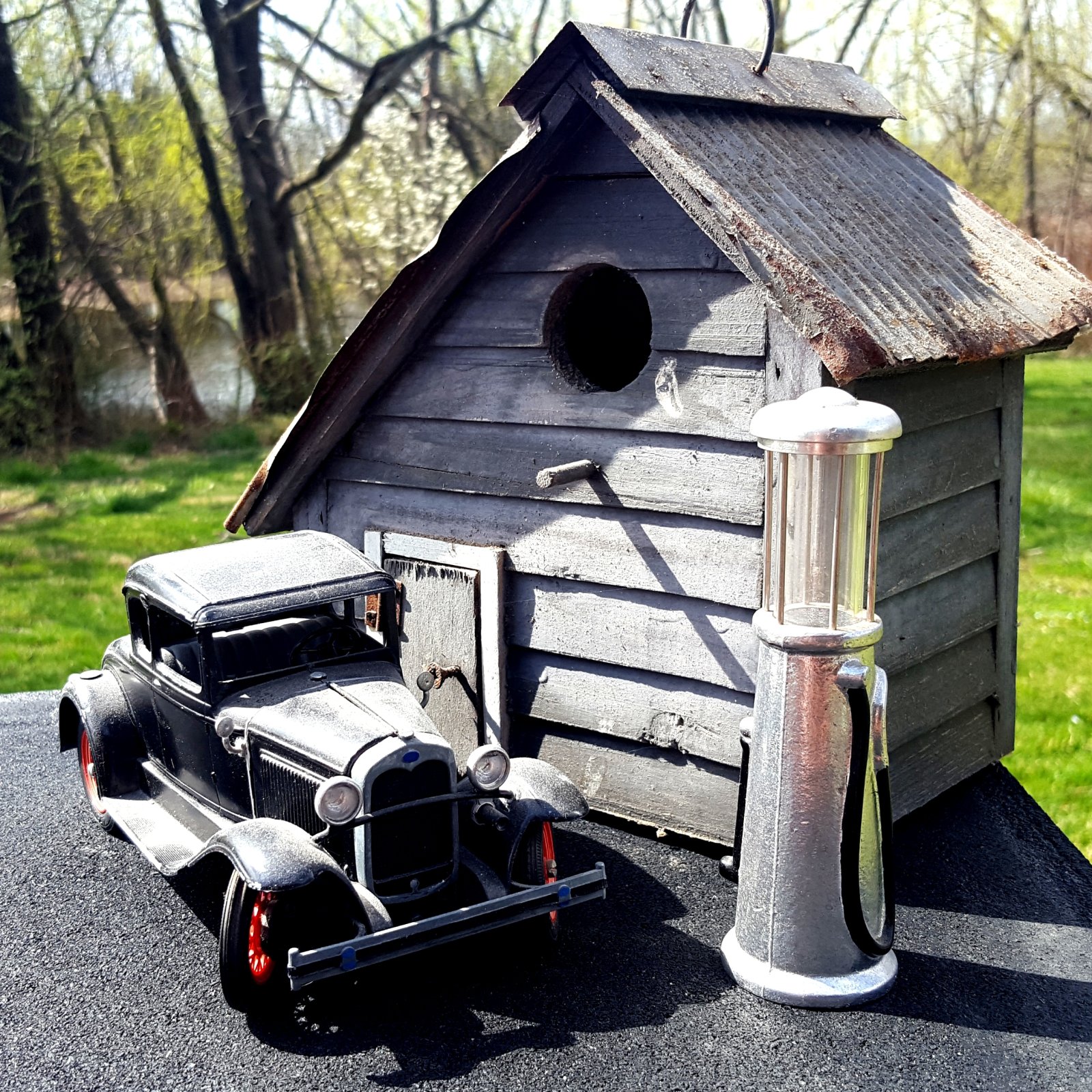 I gave a friend. of mine a 1/43 scale Road Champs 1955 Chevy 2 door Sport Coupe diecast for his O scale train layout. A few months later, he gave it back to me with these changes: