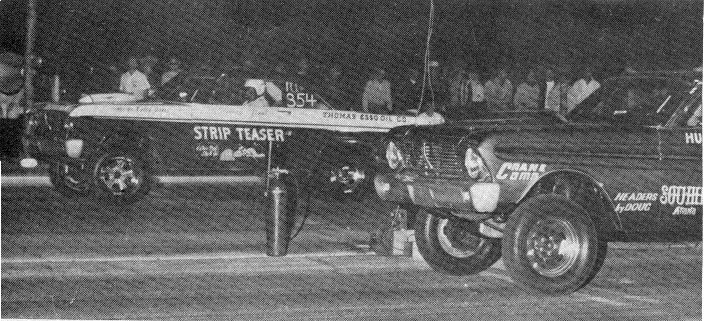 The "Strip Teaser" was owned by Bob Thomas and driven by the late Howard Neal. The Strip Teaser wasn't one of Hubert's cars although he did drive it once to see the difference between his cars and the Strip Teaser. There is a photo somewhere (I can't seem to find it right now) of Howard standing beside the Strip Teaser as it is staging off on a run, Hubert is in the car on that run.