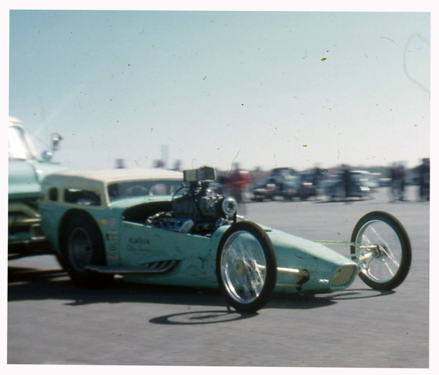 I saw this car a few times on the west coast in the early 60's. I remember the paint colors and if you look close enough you will see an empty 'nitro' can for an injector scoop. Just loved it. It ran pretty well too.
