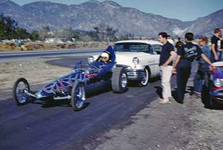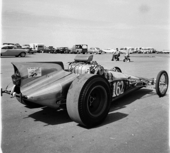 Chuck Jones/Paul Nicolini sidewinder at Bakersfield. It was very competitive on gas, but fuel caused it to plane...I don't remember if this meet was one where they ran fuel, but I do remember that it didn't get far in eliminations...probably the '60 or '61 Smoker's meet.