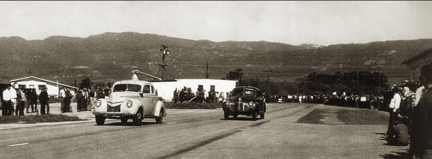 Day One of organized drag racing, Goleta, 1948...up the road from Santa Barbara, airport and buildings are still there.