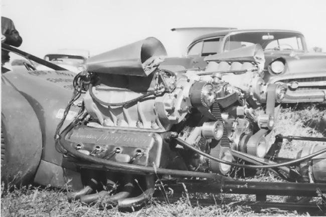 Looks like twin pontiacs. Maybe one of Mickey's setups for his speed boat