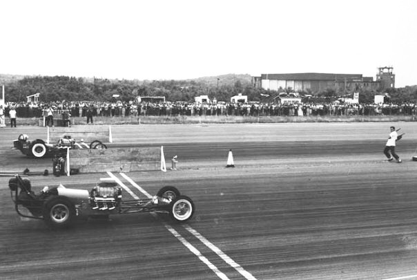 I believe that was Ron Mancini at Dallas Texas 1969. It was the beginning of the NHRA "No neutral starts" policy enforcement.