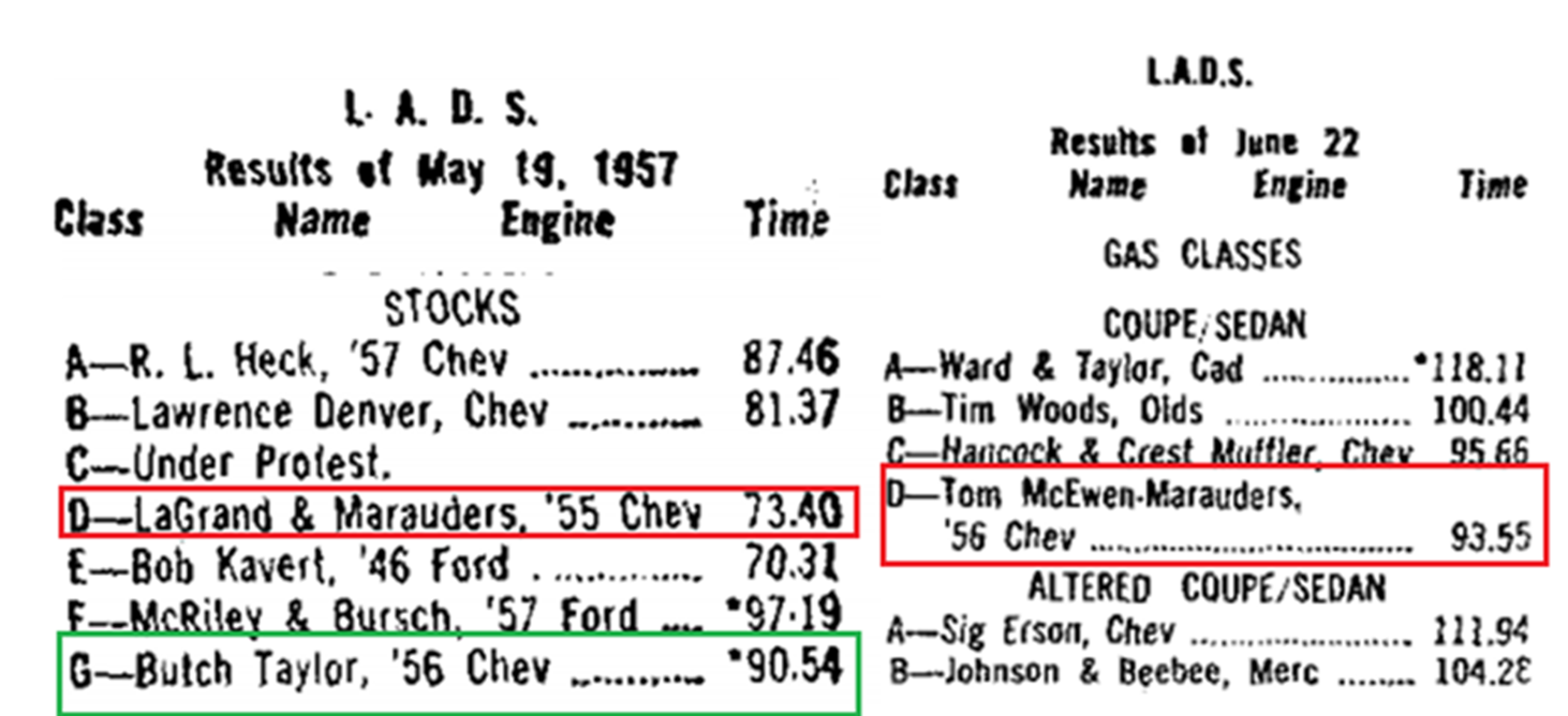 Tom McEwen/Ronnie LeGrand/Marauders Long Beach 56 CHEYV D/GAS WINNER 1957