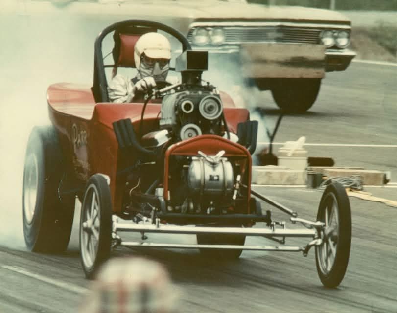 Virgil Dietz in his Boss T. My dad was his crew chief and my brother and I grew up at the dragstrip helping with this racecar.