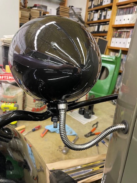 Sneaking up on it. Got the headlights wired and in (stole the bulbs from the Merc since it won't be needing them for a while). The wire hole in the headlights wasn't big enough for the conduit, so I drilled it out and JB Welded in the ring from the original headlights that the conduit clips onto. Worked out pretty decent.