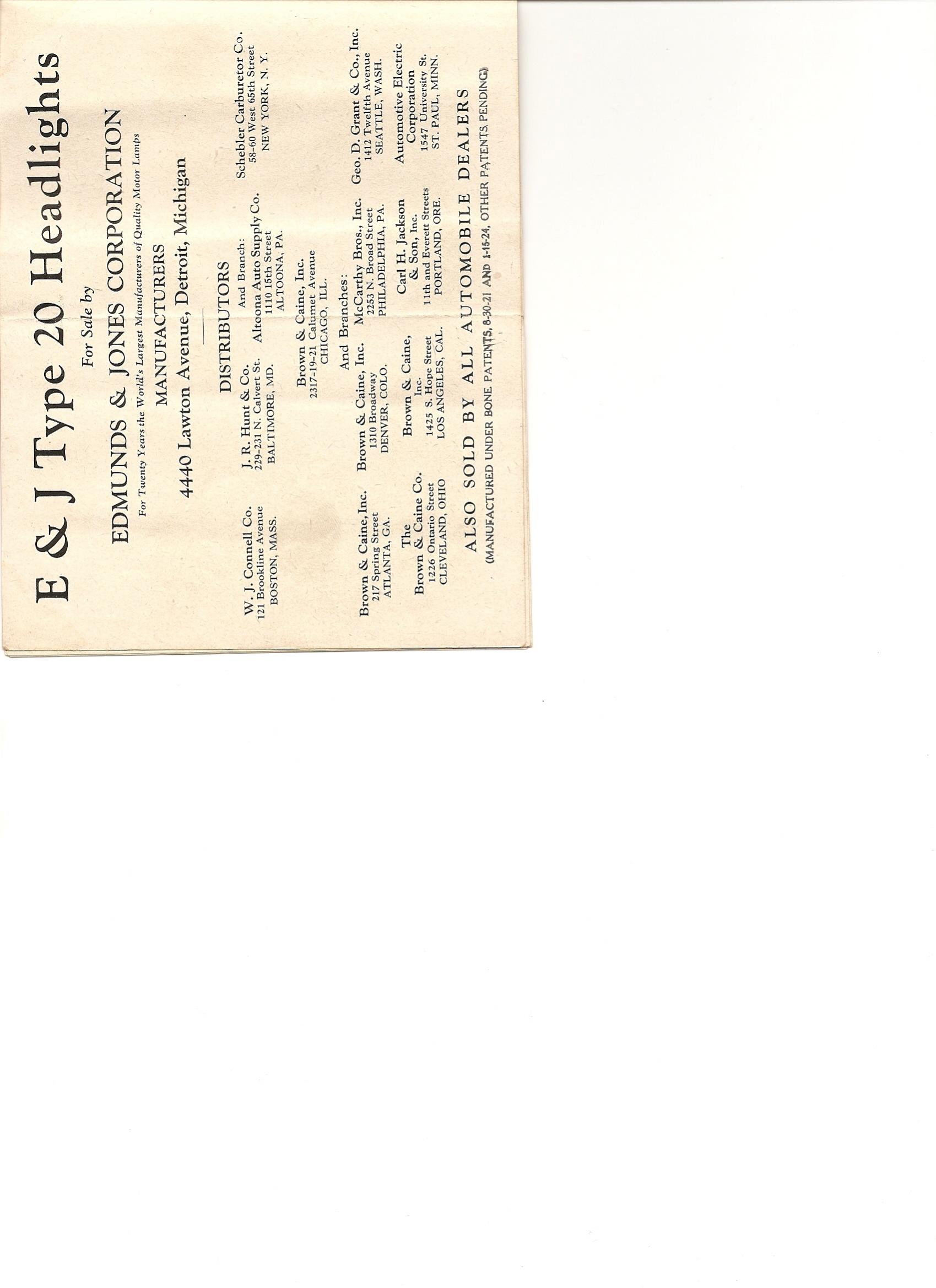 Here is a scan of the Instructions for E & J headlights.