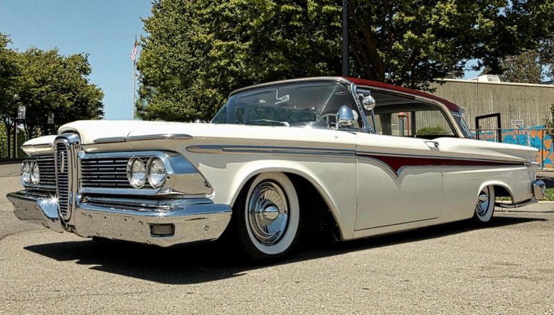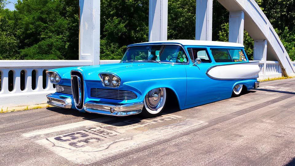 Photoshopped on stance but otherwise pretty correct. Floyd built one of the coolest Edsel wagons I have ever seen and is also a great guy. Car was chopped a couple inches and had all kinds of subtle custom things done to it past that. It is now owned by Dan Shea in Texas.