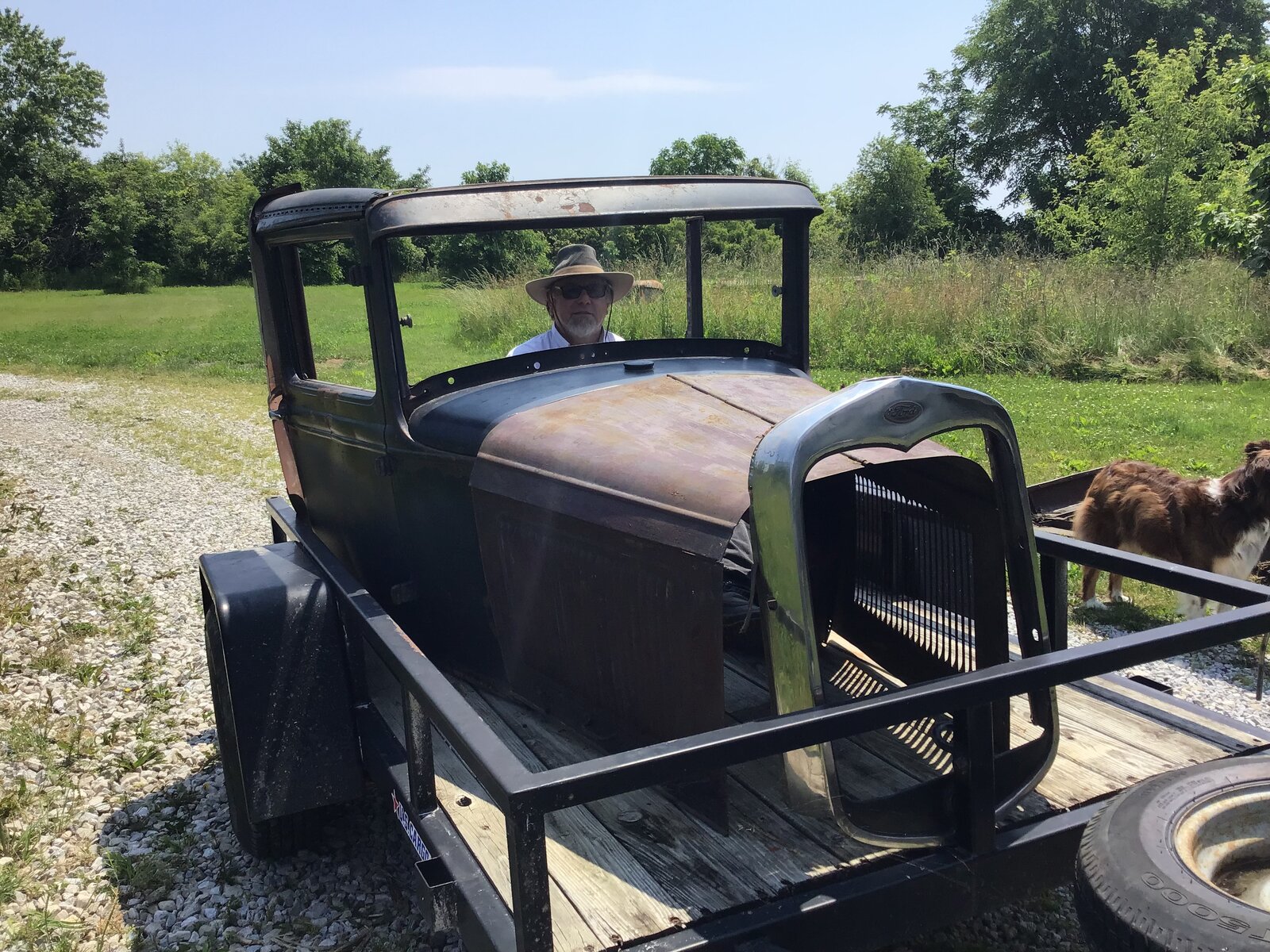 This is my first ever thread. I was able to work with a guy during this pandemic to purchase this pretty humble truck project. I agree that the guy a couple of owners up the line needs a pretty stern talking to for cutting up this fairly reasonable Tudor body, but it is going to let me try to make a truck cab without to much guilt. I have other projects in front of this one, so you won’t see something running and driving in a couple of months like some guys are able to achieve. I hope it does become my something from not much build. I call it the eighty bushel build, because that is how many soybeans I had to sell to start playing. The truck box is also half full of parts, so what I think I have is a 30/31 tudor with subframe cut off behind the b pillar, reasonable doors and cowl (big v cut out for a potent power plant)complete with visor, curved headlight bar, windshield frame, pretty rough lower back panel, some roof supports, side glass and mechanisms, and the cut off tudor rear quarters. Whats missing is the rear window and everything else. I have a model a frame and a half, and front axle, but am going to make a footprint template and see how it fits on a 46 panel truck frame I’ve got. I put a boat seat on some 2x4s, and it seems I have room in this thing, even the dog could come for a ride. I know proportions are everything, and hope to keep this fairly tight. At present fenderless highboy style is the plan, I have some ideas for a box, and will likely be making my own. There is an equally humble mullins trailer in the shed that might look okay behind it. That it for now - I invite (cringe) comments and sage advice, daylatedollarshort.