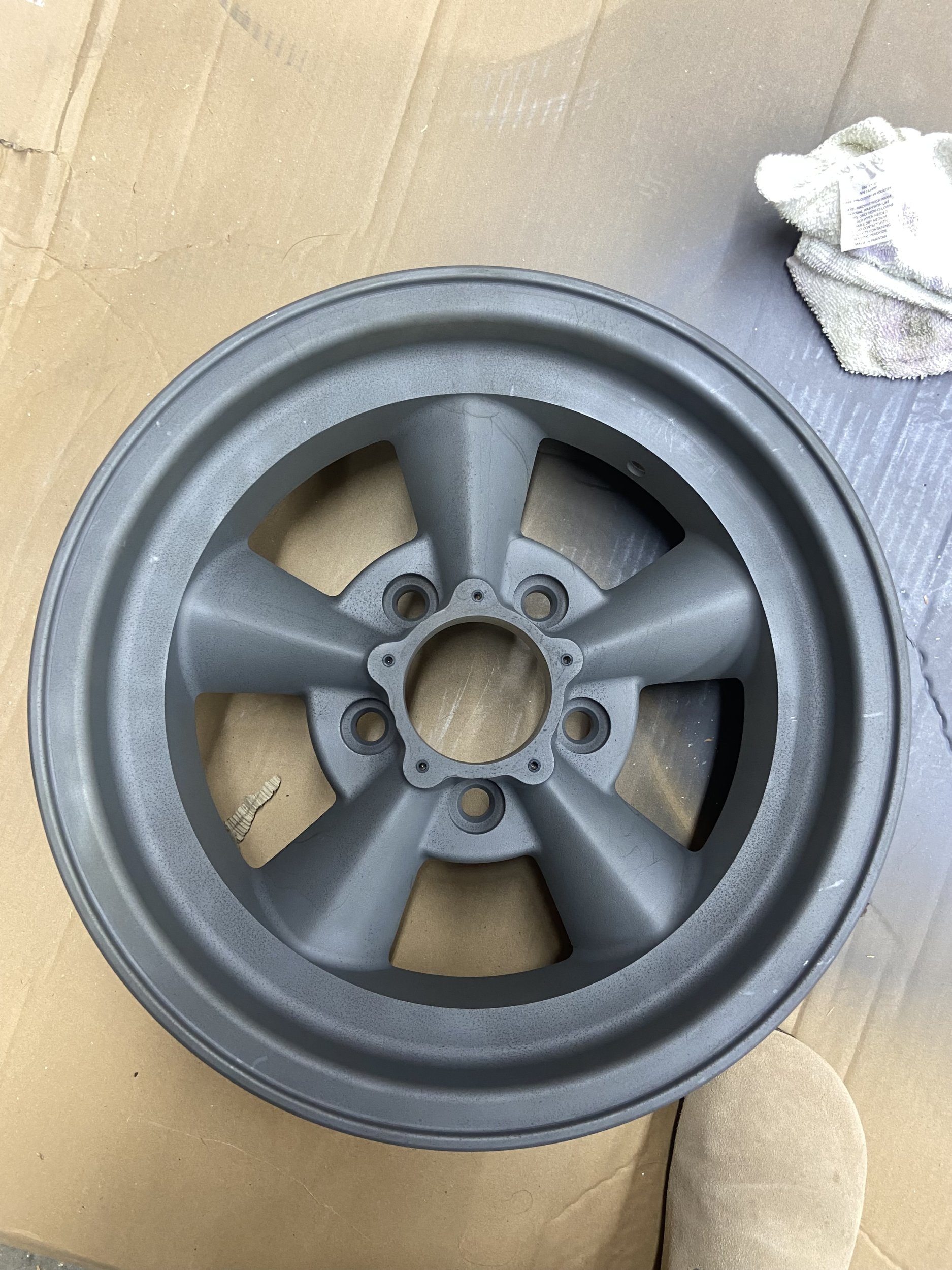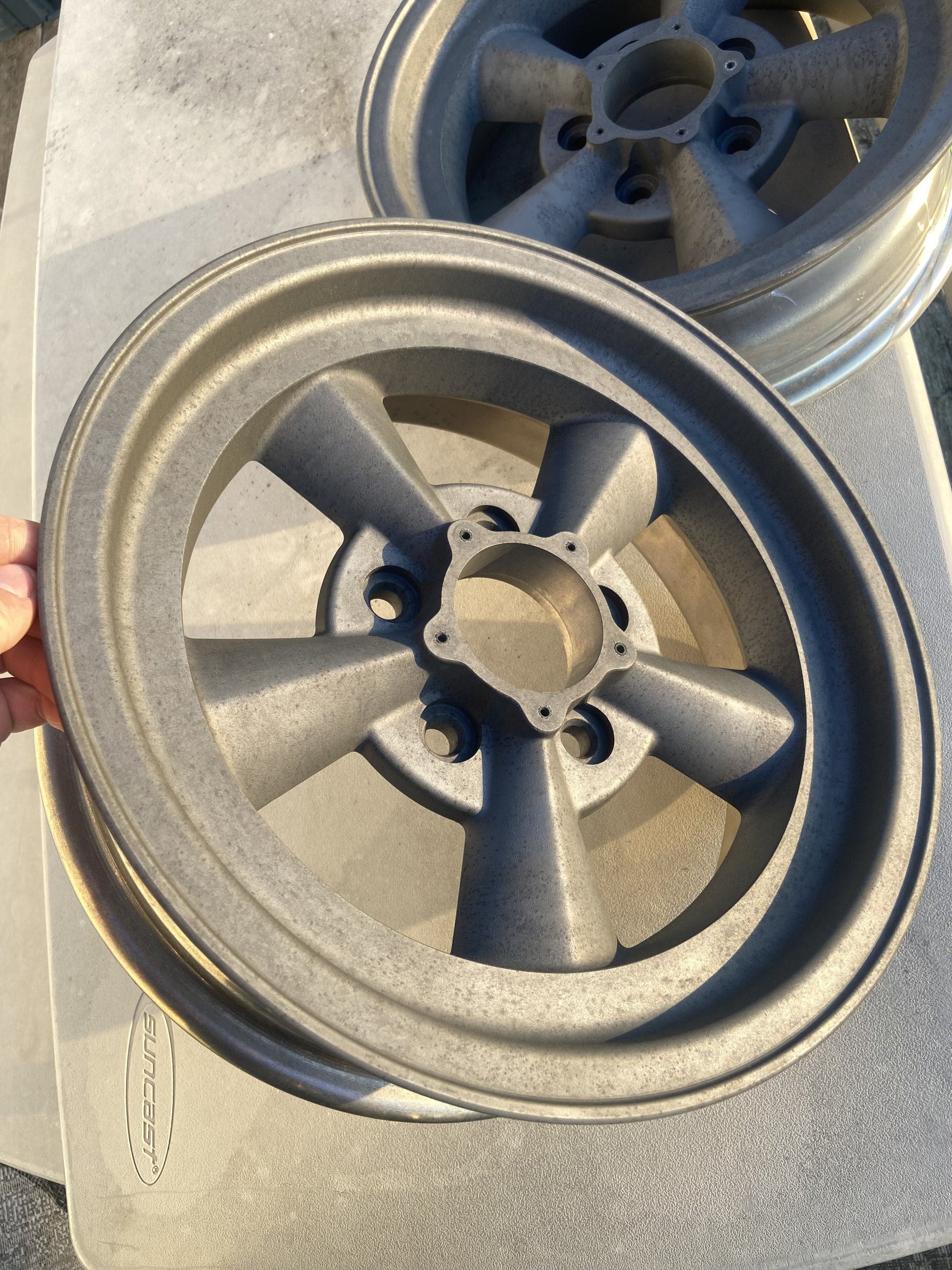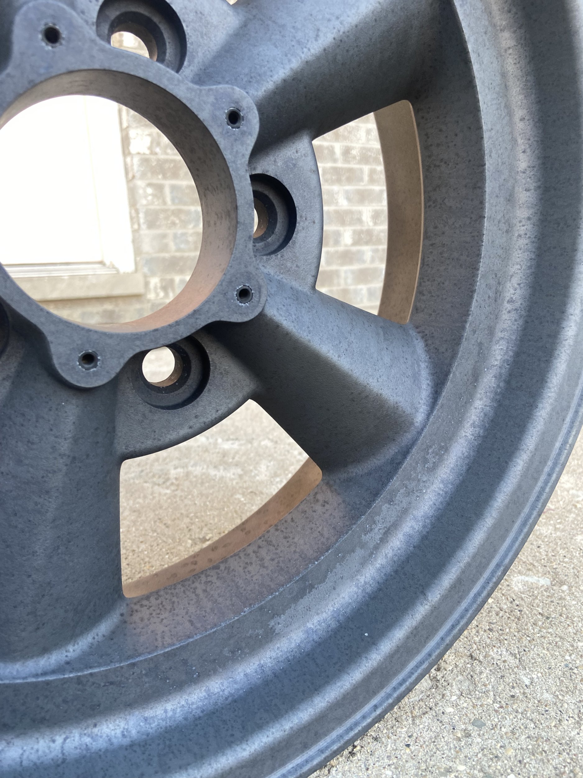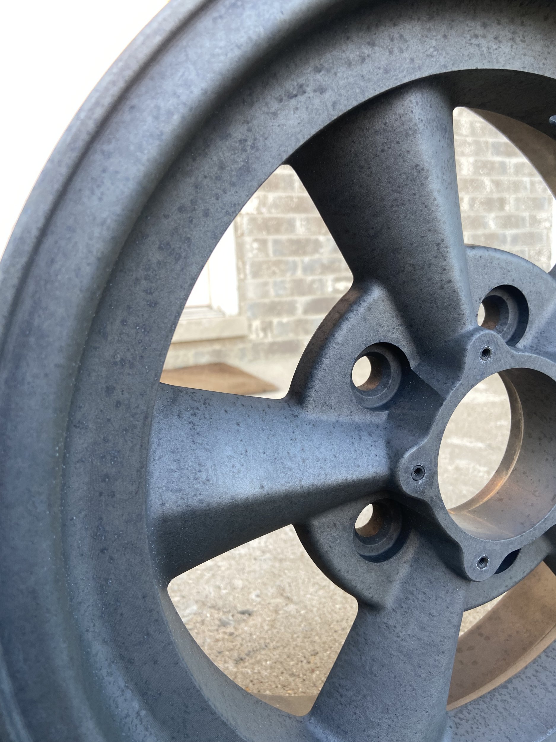 Well wheel 1 has been sanded and blasted…I used 80 grade on a cut down interface pad by hand for 80 of it and a 3” DA where I could. I blasted the whole rim to make it look uniforms..I could only get the blueing liquid for steel locally…tried it anyway..not the best result…didn’t really darken it much…won’t post a pic for that reason...ordered the aluminum blueing liquid and it will be here Tuesday. I may re blast the wheel and try to start fresh with the Aluminum stuff..