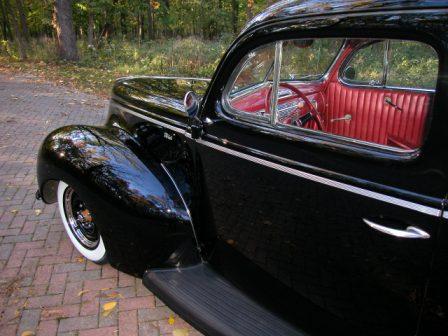 DAMN NICE JOB! Your attention to detail is spot on! Love the black rims with ring's, marbled wheel, and that mill look's like it was done circa '62..NICE! Ok, one question though..Electric fan? Just wondering.. That's one 40 i'd love to own. Tony