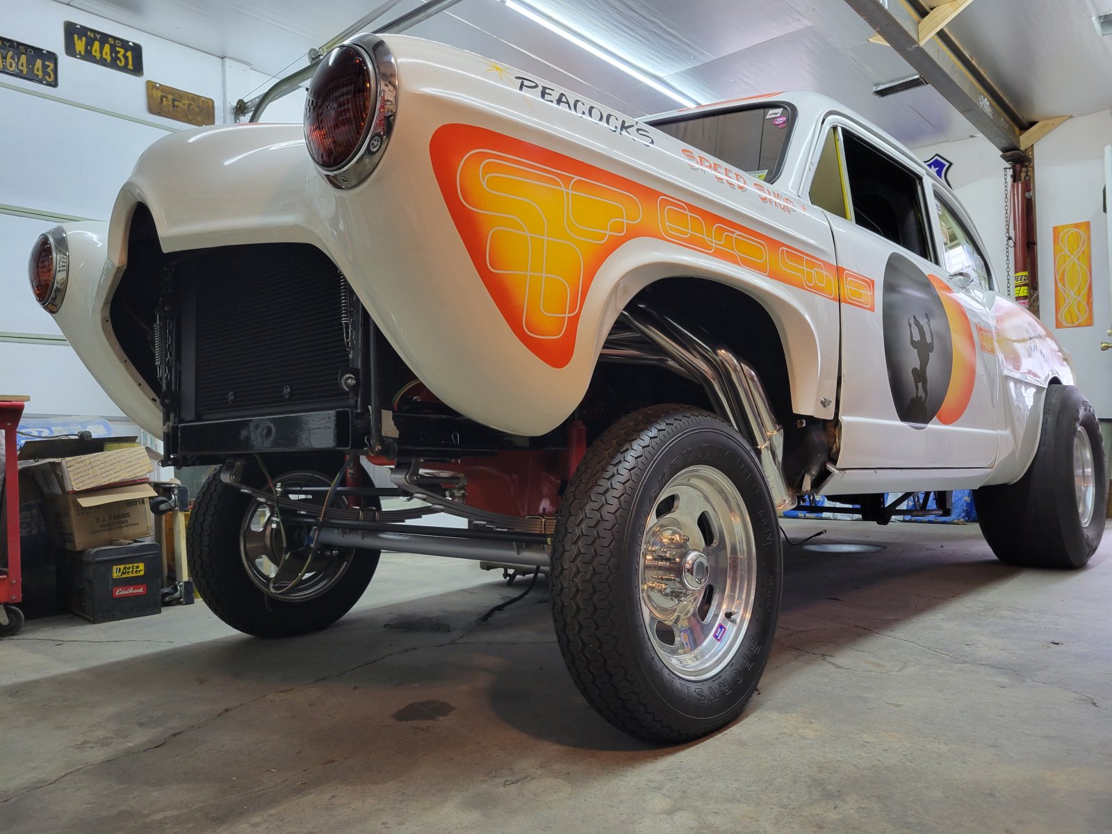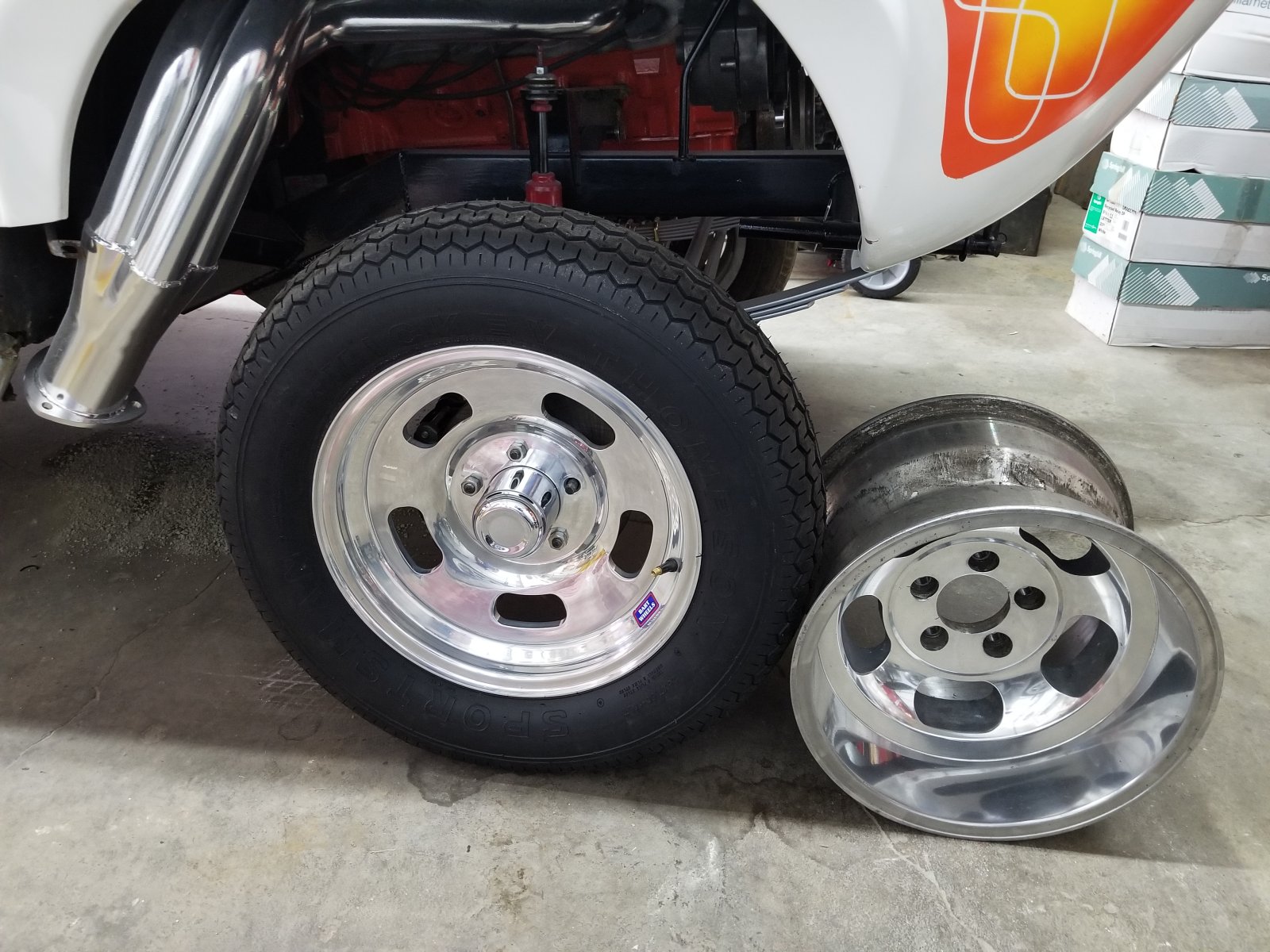 I redrilled the drums myself, pulled the street tires off the old ford pattern 15x10's and put them on the 11's