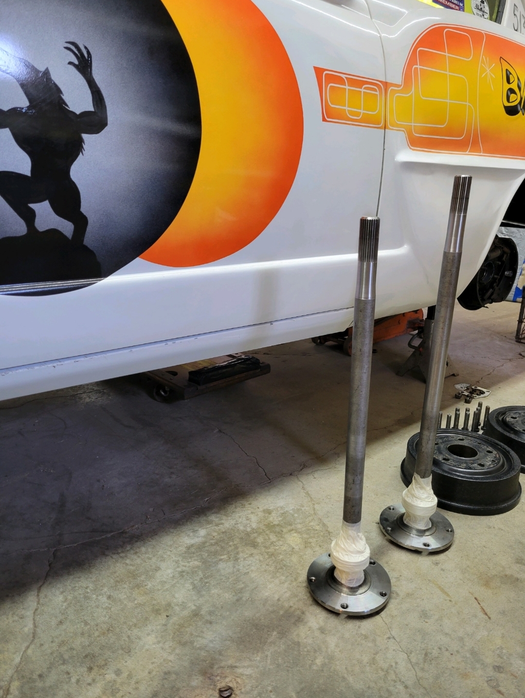 So I pulled the axles and sent them back to Moser to get redrilled to 5x4.75 with screw in studs in 1/2 inch ford size.
