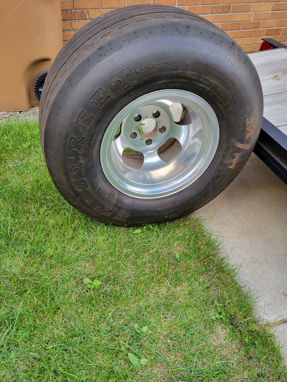 I ended up collecting a set of 15x11 and 15x10 slots in 5x4.75 pattern So I pulled the axles and sent them back to Moser to get redrilled to 5x4.75 with screw in studs in 1/2 inch ford size. I redrilled the drums myself, pulled the street tires off the old ford pattern 15x10's and put them on the 11's Bolted them up and for the first time I have the same bolt pattern front and rear, now the only one that still has a miss match of bolt patterns is the t-bucket. Still need to order different lug nuts and get the 29x11 slicks swapped around.
