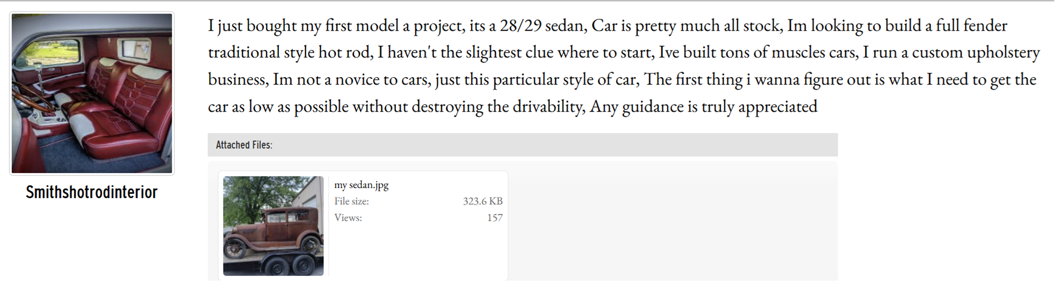 Discussion in 'Traditional Hot Rods' started by Smithshotrodinterior, Aug 6, 2025.