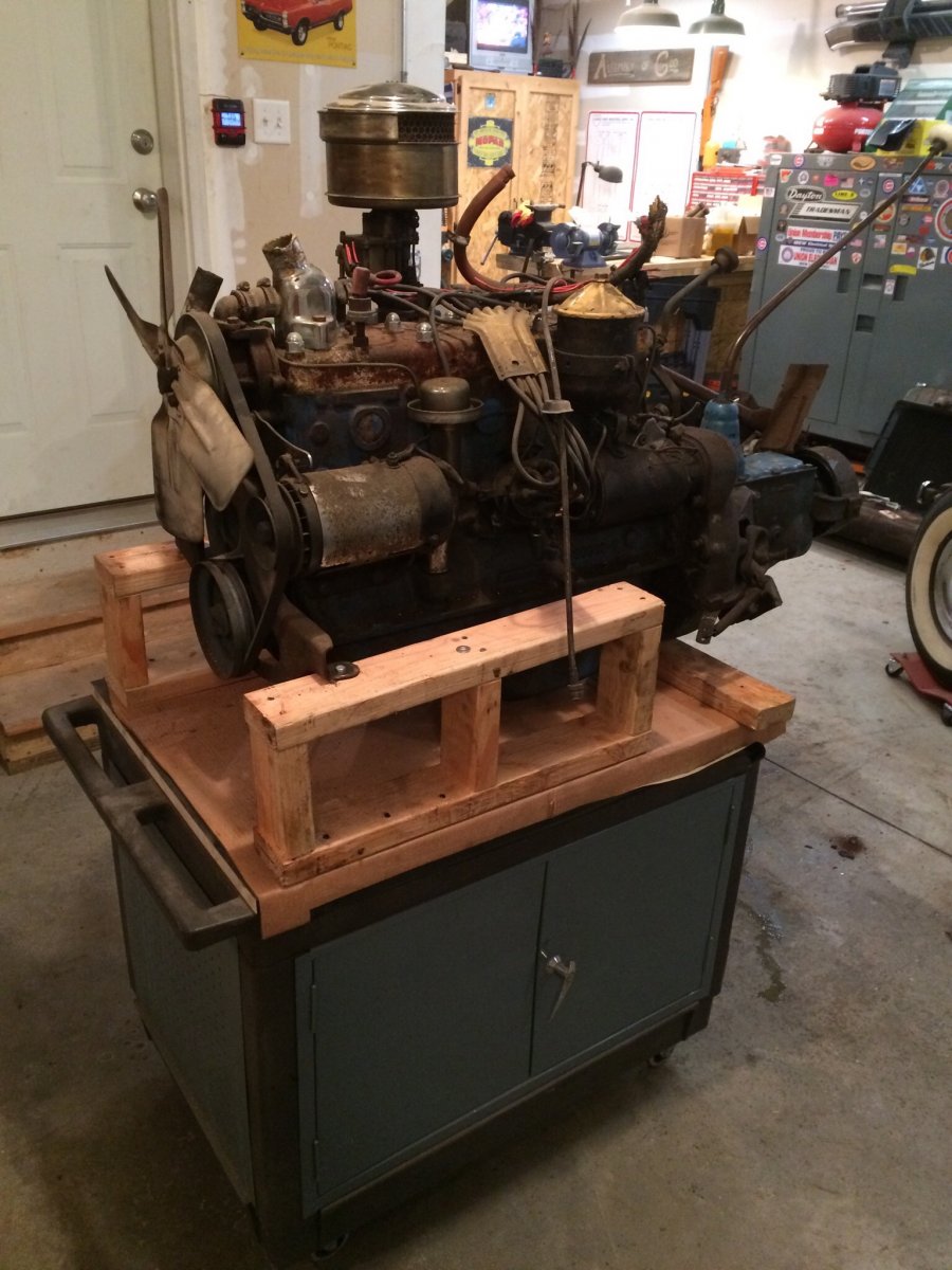 This is a '40 rebuilt 231 that came in from out west... Here it is just before installing it in my '50 dodge. Didn't hop it up or anything (but still want to) Here it is in the car...