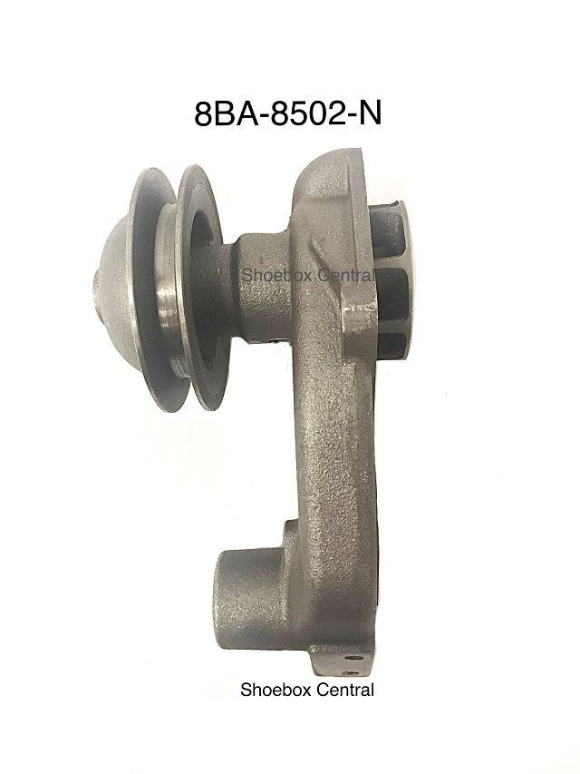 The mounts on your engine are truck pumps. You need 1949 car pumps which are wide belt like the truck pumps you have.. Repop car pumps are readily available from a variety of sources. Shoe Box Central for one .