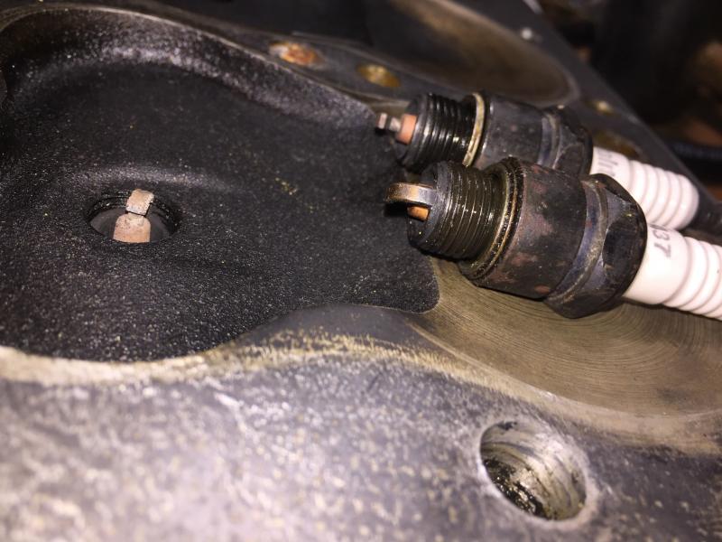 Here are the thread I am referring to : https://www.fordbarn.com/forum/showthread.php?t=302200&highlight=Offenhauser. The bottom line is Champion "N" (or equivalent) series (3/4" reach) with a .21 spacer. EDIT : I found the original original thread that has all of the details : https://www.fordbarn.com/forum/showthread.php?t=272052. Here's what the body of the plug should look like when screwed into the head. (This not a perfect example, since these are Edmunds heads. On Edmunds heads, the spark plug location has been moved enough so it is not directly over the exhaust valve; this allows the use of extended tip plugs.) These are L82YC. In Champion nomenclature, "L" means 1/2" reach (full 1/8" more than stock) and the "Y" means "extended tip", which you can run with Edmunds heads. The important thing is that the bottom of the plug body is flush with the combustion chamber in the head. BTW, here is a picture of a stock (3/8" reach) plug in an Offenhauser head. Sure, the engine will run, but that doesn't look optimum to me. How about the color of the deposits in the transfer area; sumpin' ain't right,