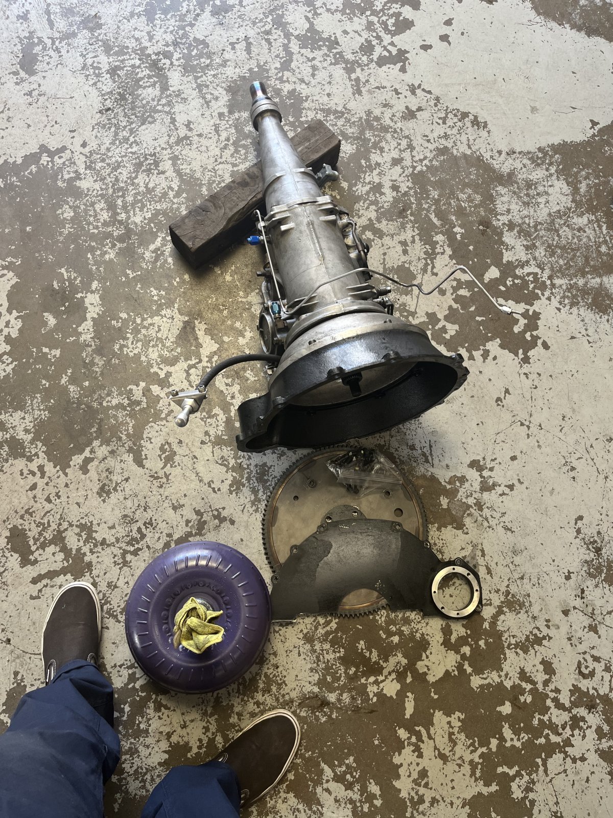 For sale- C4 transmission with everything you need to run it behind a flathead: 8ba truck bell, flatomatic kit (flex plate, starter plate, adapter) all hardware, torque converter and C4. Vacuum line, Speedo gear and dip stick. Came out of a running car (mine). About 9k miles on it since rebuilt. Shifts as it should. Replace the oil pan gasket and seals and throw it in and run. Flatomatic makes quality stuff. Located in SoCal.