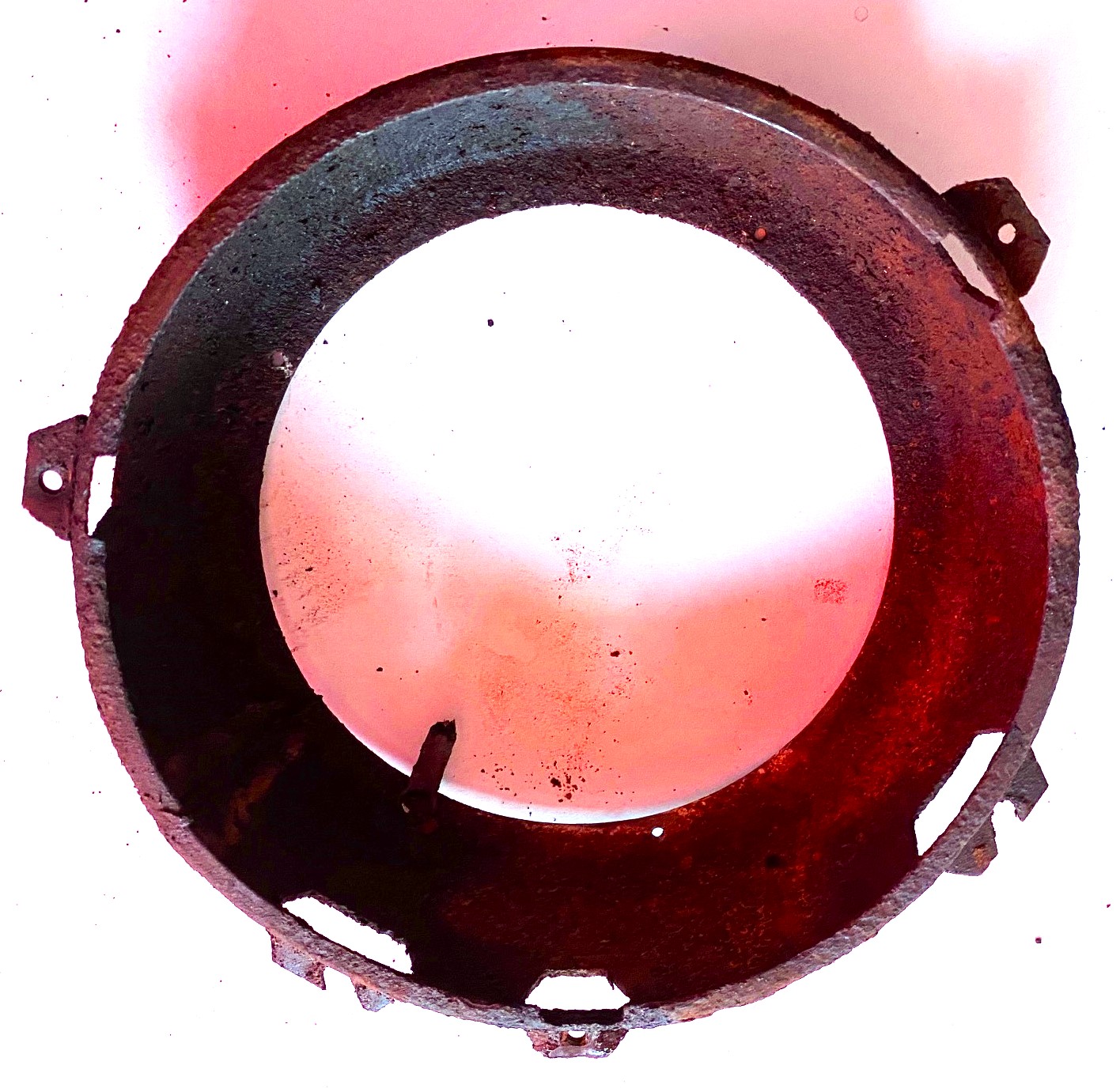 Wow, what an adventure today, with the disassembly of this ancient headlight. I spent a few hours over at John Harwood's shop, and we got after it. I will say this for the people that built these headlights, they were built to last a life time, and there is nothing wimpy about the metal that was used to construct them. We had to use heat, and an impact wrench on the main big nut that was on the stalk, and even the air impact wrench, with a big heavy duty hex socket, could not get the nut to move, so the die grinder got the job done, about getting the nut to come away from the main stalk. We took our time, and we were able to get all of the little screws out, with out destroying any of them. So now its a lot of wire brush and tinkering to modify this old headlight bucket and the internal fixture, to evolve into the art project that it will become. Thanks @lamaison for that exploded view, its appreciated. I saw right away that my light isn't the same as the one on the COE truck that I posted. You all stay tuned to see what this will turn into. Thanks from Dennis.