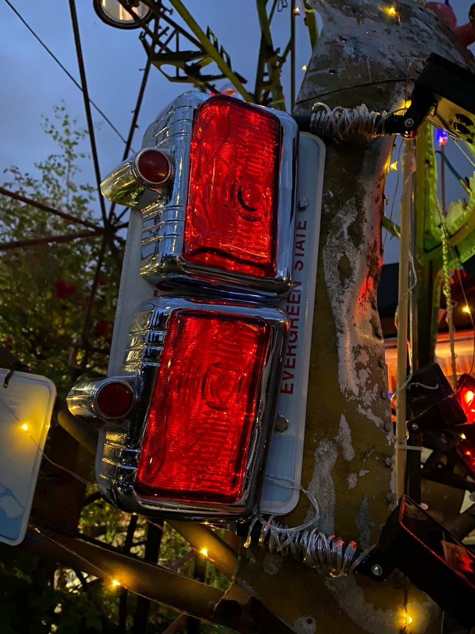 Its been hot weather here in Seattle this weekend, and that is just fine with me. So today I pulled the trigger on ordering those two bicycle wheels that I posted earlier, they will be delivered here on July 15th, or possibly earlier, depending on the Amazon delivery system. In case anyone is interested in the cost of this project so far, its kind of border line insane, but I have no kids, so I can spend the money on stuff I like. And lets face it, this project is going to be amazing spinning in the wind, all lit up at night time. I figured @Okie Pete and @hotrodjack33 will be interested in how much this rabbit hole costs so far! But to me its really worth it! "Money, has no value, unless its spent" Cost of project so far! Cost of the Ford COE Headlight assembly..............$10.00 Cost of the first 47 Chrysler tail light........................$10.00 Cost of second 47 Chrysler tail light, Ebay,............. $175.00 Cost of two pack of LED spotlights............................$35.00 Cost of two pack of 16 FT white LED lights..............$22.00 Cost of 1 can of black Rustoleum spray enamel........$9.00 Cost of two 20" aluminum swirl pattern spoked bicycle wheels...$207.00 Cost of cutting the back out of the sealed beam...............for free! Total, $468.00 Update on the total cost. Final total, $849.00, and worth every penny I invested in it! And still more to go, but the finish line is in site! Stay tuned fellow intrepid HAMBER'S, the "BUCK ROGERS" Space nerd, signal beacon, apparatus, is making great progress! Thanks from Dennis, for following along. Current shot of busy work table area, true madness!