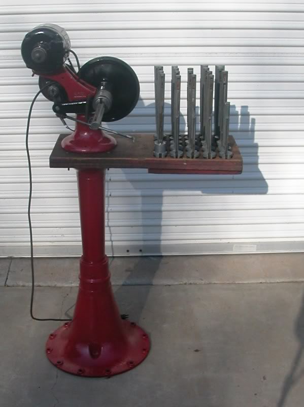 It is great that Sunnen stayed with the same mandrel mounting design over the last 100 years, unlike most other technologies with planned obsolescence. My first Sunnen hone was from the 1920's I believe... It was mounted to an old Fordson tractor axle bell. I did later add a coolant reservoir and pump. I then found this bench mounted unit at the LA Roadsters swap meet. I set it up on an old Craftsman saw stand It gave many years of service, but then was recently offered this unit for free. It was an industrial unit, so painted grey. It must have been sitting near something corrosive, as all the bare metal parts were very crusty. I disassembled it, cleaned and painted it red like an automotive machine. It has a few upgrades over the smaller machine. One being a bigger motor and then higher speed capacity. It also has a multistage coolant bin system, similar to a gold mining sluice box. This really helps to seperate out the bronze filings from the honing fluid.