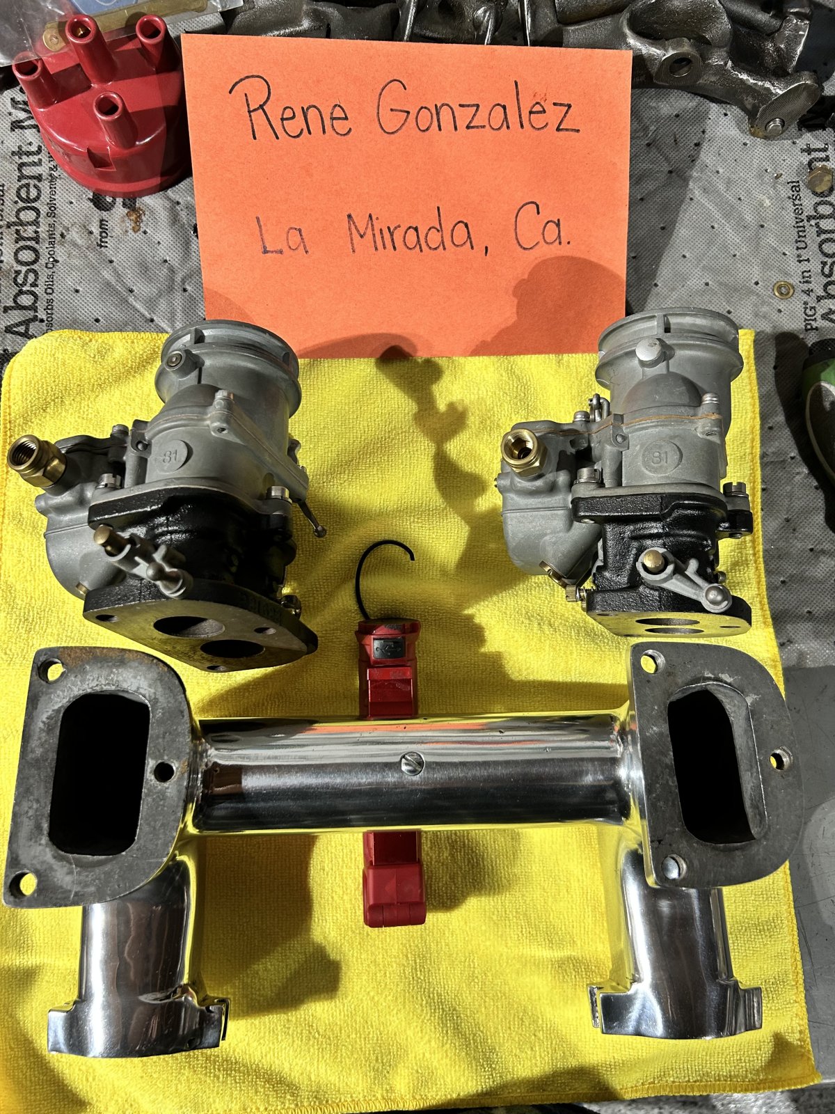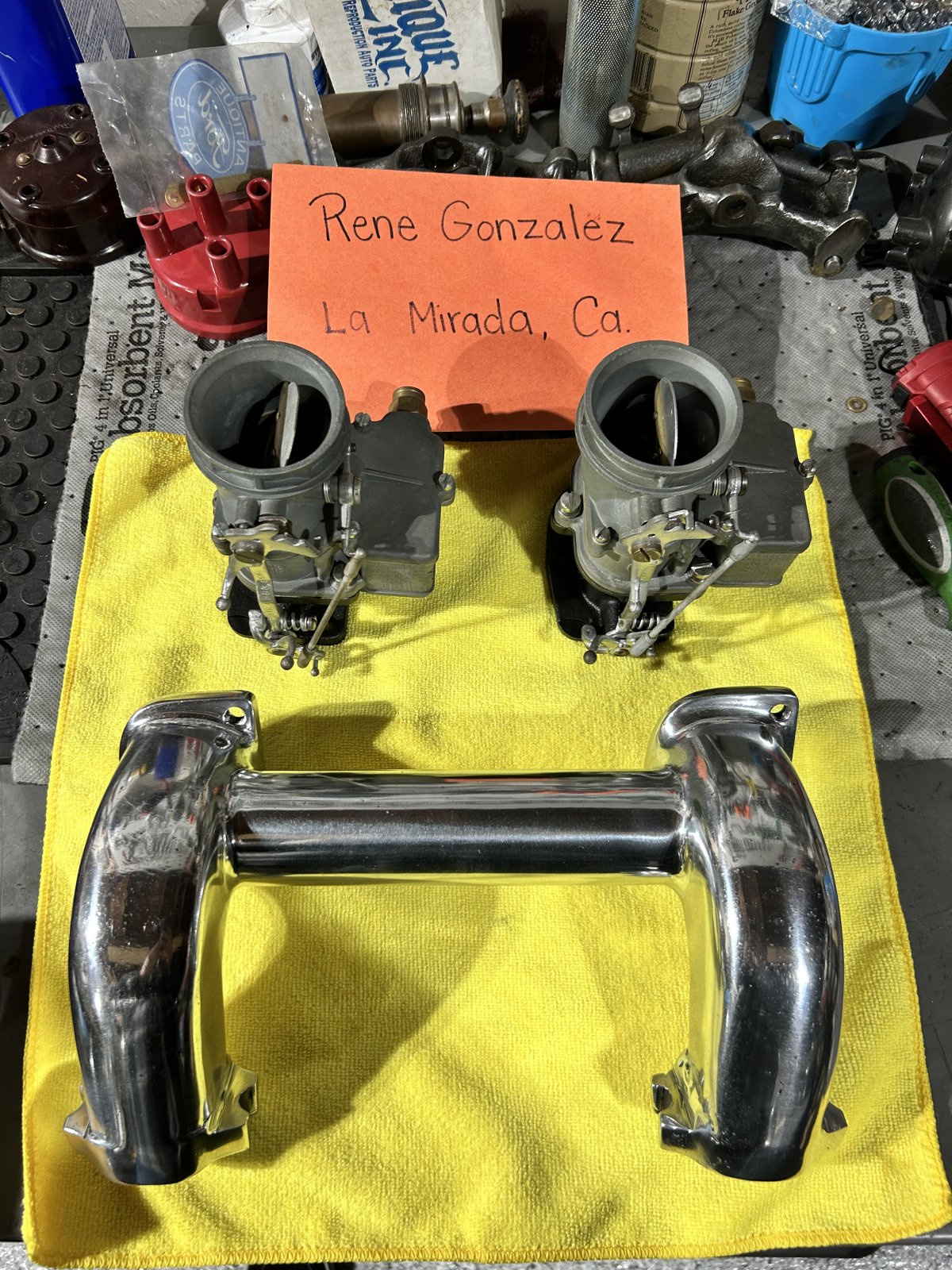 Ford model A/B polished dual downdraft intake with 2 mint rebuilt Stromberg 81 carburetors. Great if you’re building a period correct banger motor. $1200 shipped.located in La Mirada Ca