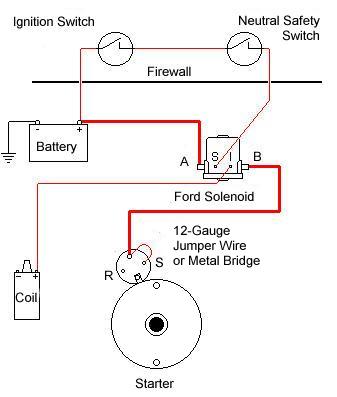 If using a Ford starter solemoid/relay on the firewall you can bridge these 2 wires together [similar to the Chevy hot start fix]