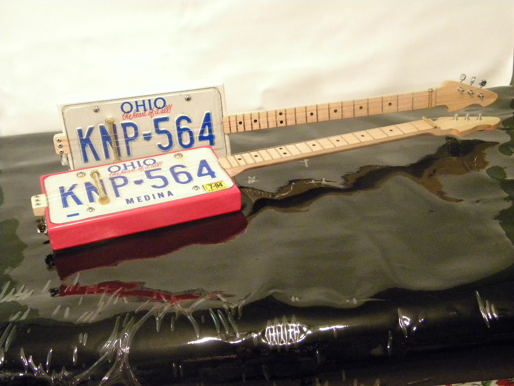 A young man contacted me about making a couple of guitars, one for him, and one as a Christmas gift to his younger brother. They are in honor of their sister, who lost a battle with cancer when she was 17. Their parents saved these plates, which were on her car.