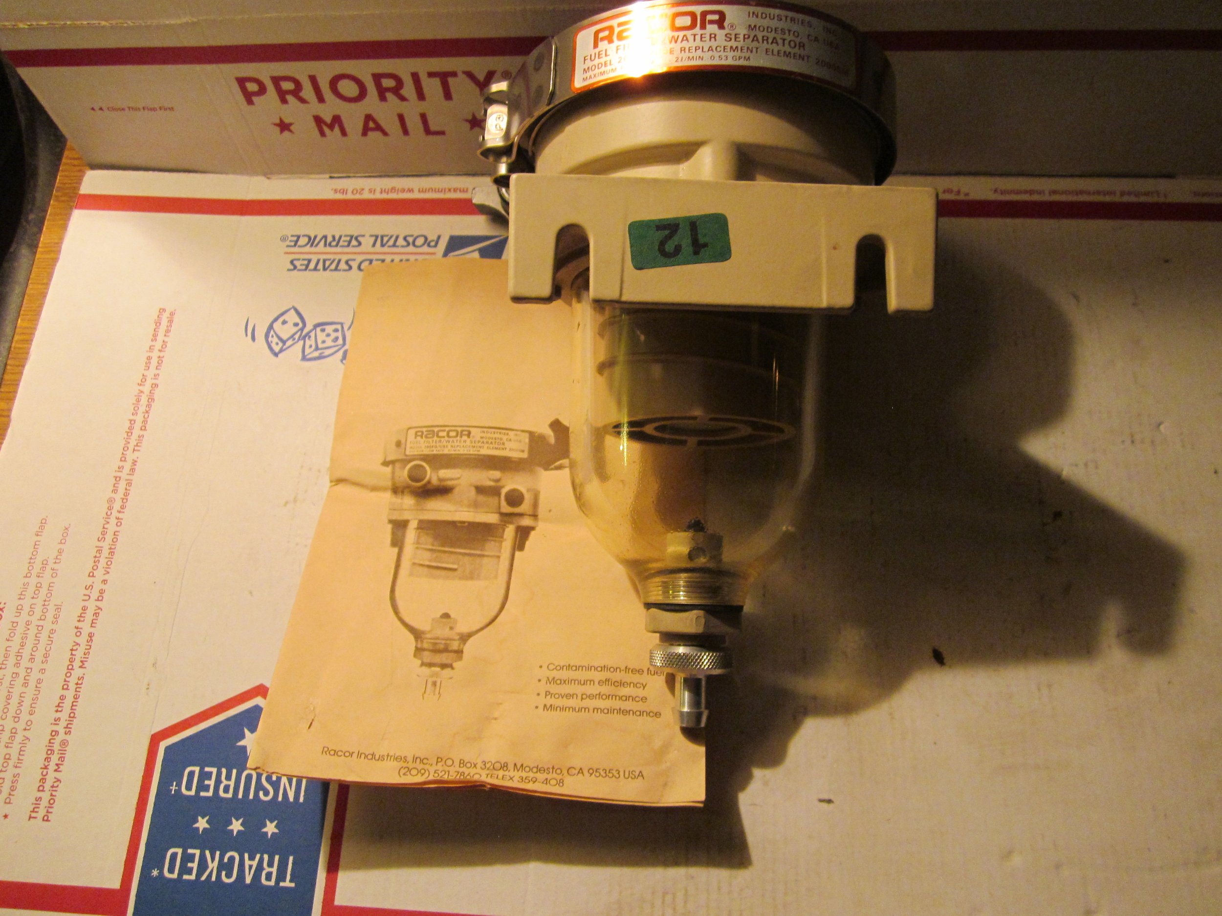 never used. in box. gets the water and the dirt out of fuel. racor brand. $55.00+$21.00 shipping.