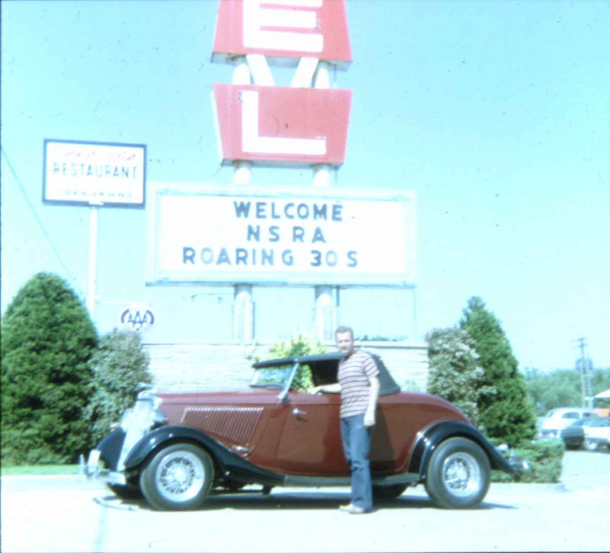 Well played, sir. Well played! The bottom 4 photos were from when the Roaring '30s rod run was held out at the old St Charles County Fairgrounds, before it was sold and developed, and the top 4 were from when the run got moved to the Lindenwood College campus. The Lindenwood photos had to be at least 1978, because that's when Dickie finished his orange "Confusion" roadster the first time.