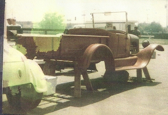 Here's a scan of the shot used on Feb '62 R&C cover. You can see that the car had a V8-60 for power. Here's also a few shots of the sad ending for the car. Like many cars, a rebuild was started but not finished. The car was being sold at the LA Roadster Show swap meet at the Great Western Exposition Center probably in '71. Wouldn't you just love to stumble into this at the Roadster Show swap meet today? The T coupe in the back ground was mine which was also up for sale that day. Neither car was sold at the show but Bob Barnes later bought the roadster and I sold the coupe to a guy who shipped it to Honolulu.