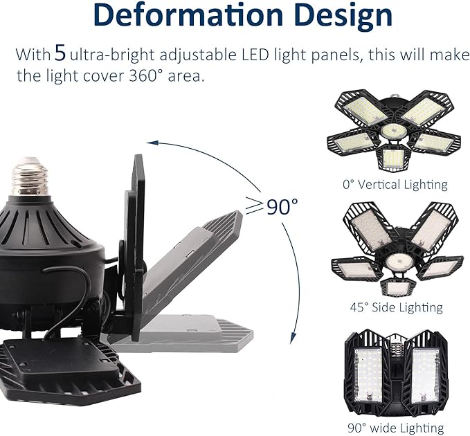 Lots of great ideas here-i'm sure they all work for the parties who use them. But, being simple as I am, I found that the light bulb screw in LED based lights from costco are as bright as most any Led based light. 2 pak for $29. I use only two in my garage and two in another garage I use-which is large. They light up all of it, and since they have 3 adjustable panes, I can aim it where I want it.