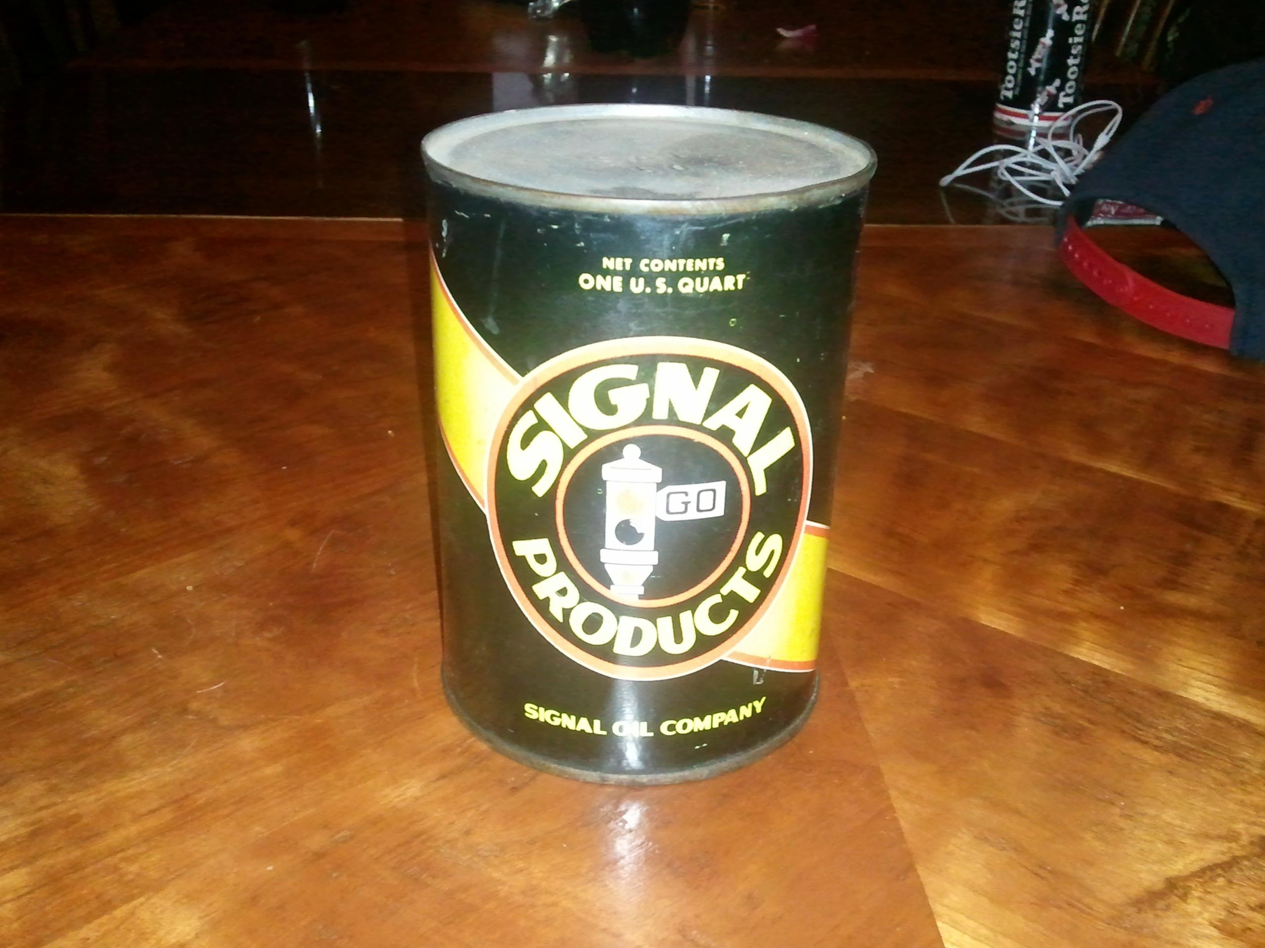 On this site: http://www.oldgas.com/forum/ubbthreads.php?ubb=showflat&Number=108375&page=all It says the can I have is the first quart cans that signal put out. And is from somewhere between 1931 -1947 Thanks, "Skrach" My Vintage Blog: www.VividlyVintage.com My 55 Chrysler Worklog: www.Pop's55.com