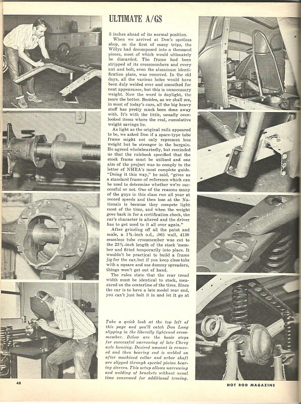 So on an old model A C or D/gas car I was looking at one time that originally ran in Ohio,it had an Olds rear end with wheelie bars fabricated from a pair of old main leafs.Was this a fairly common setup back in the early-mid sixties?