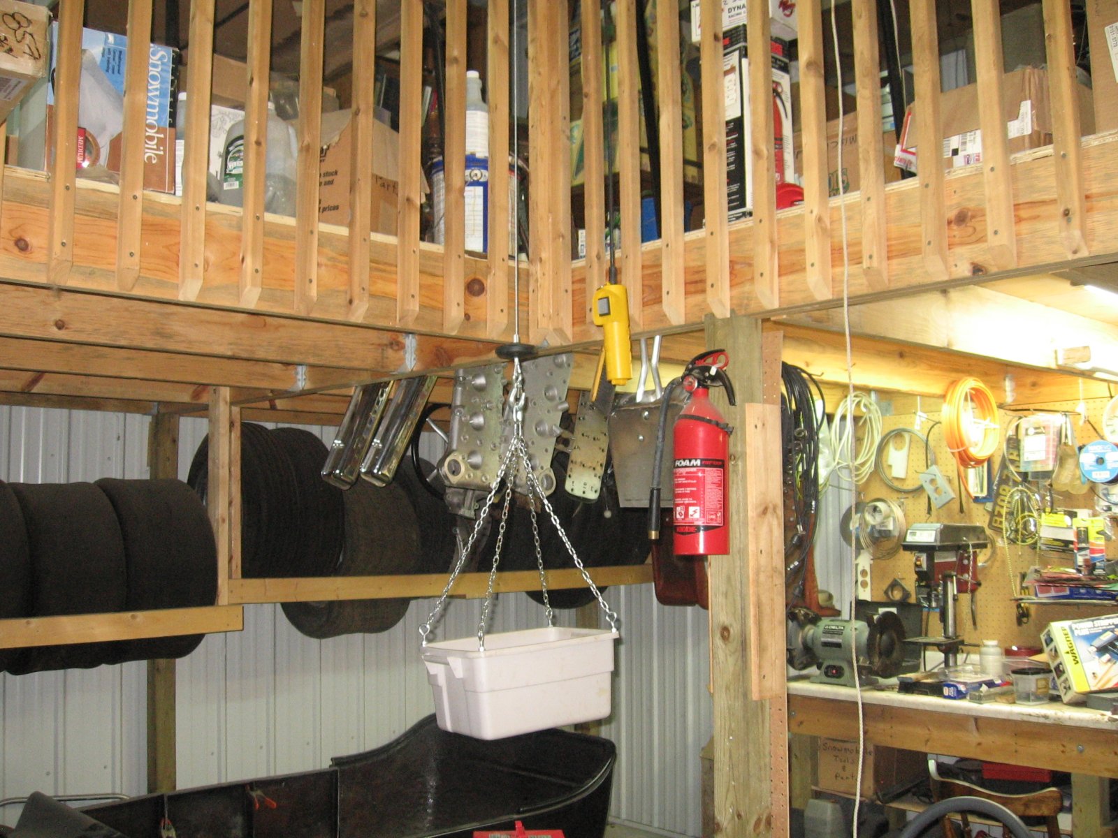 About 30 years ago I had a friend who had that rail and hoist setup in his garage to raise and lower stuff from the second level and it worked pretty slick. He built it in when the shop was built though. He had built a setup that was more like a small metal pallet with a framework that had a ring that the hoist hooked to to lift or lower what ever fit in it up and down. He sold the place and moved out of the area a few years back though.