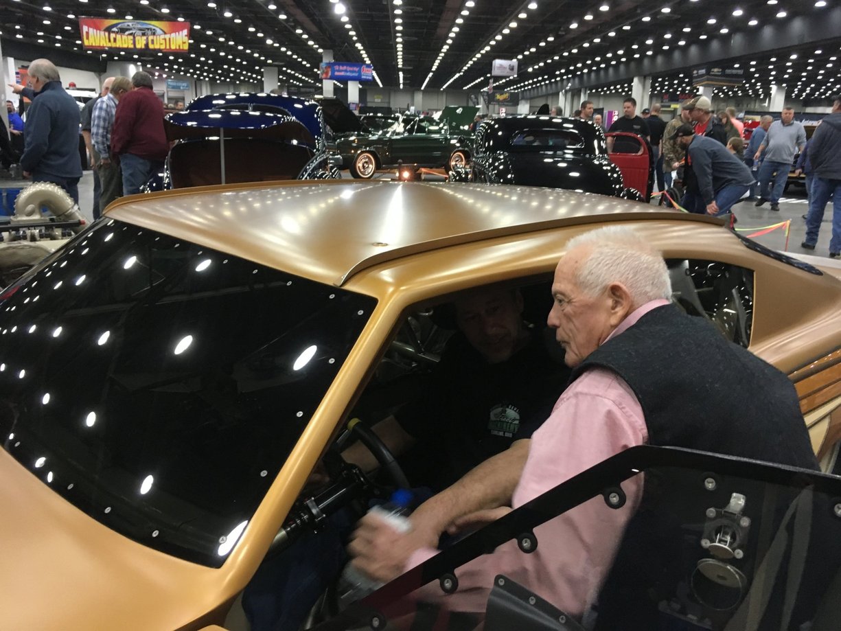Sorry to hear of his passing. I was reading an older Hot Rod magazine that I had and was reading about the camel toe racing Barracuda. It was on my nightstand when I drove to Detroit for the Autorama. I'm walking around and I see the car I was reading about a couple nights before and I'm instantly dragging Mrs Ratdoggy over to it. I'm like a kid in a candy store at this point. So as I'm explaining stuff on the car to Mrs. Ratdoggy, a gentleman walks over and starts talking to me about the car. Finally I ask him if he is George and he is of course. He tells me to climb in and check it out I said I don't want to scratch anything climbing in and out and he laughed. Very nice man, RIP Mr. Poteet. Mrs. Ratdoggy still can't figure out how to take a good picture with a phone. That's me in the car and George explaining things