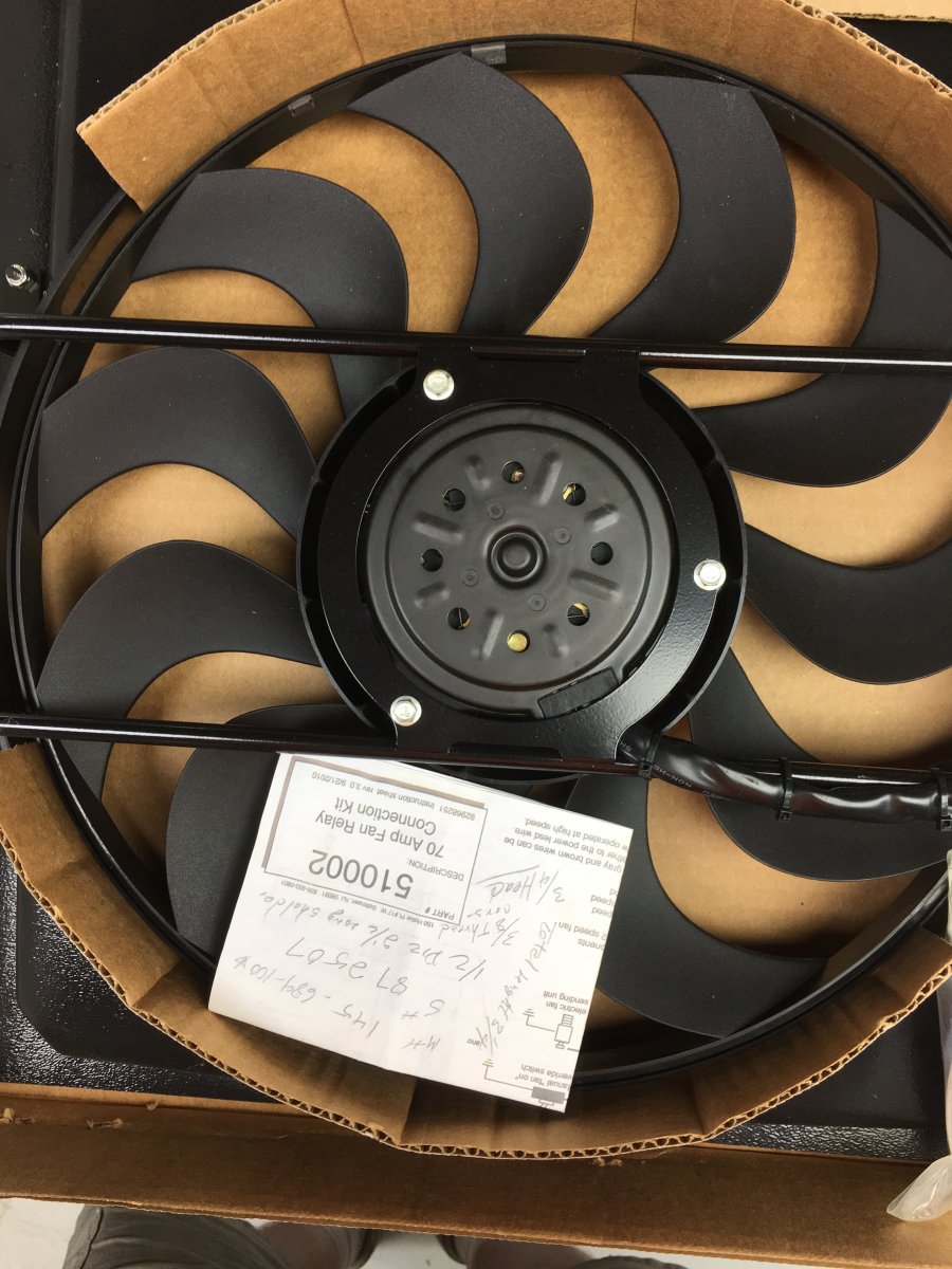 If you need more cooling capacity, a box-like 'shroud' w/aft-hinged (top edge), flaps would draw thru the rad. but may mean rearward 2-3" move for the juice fan. Think: rectangular radiator core-size funnel, that reduces to round & pours into the fan.