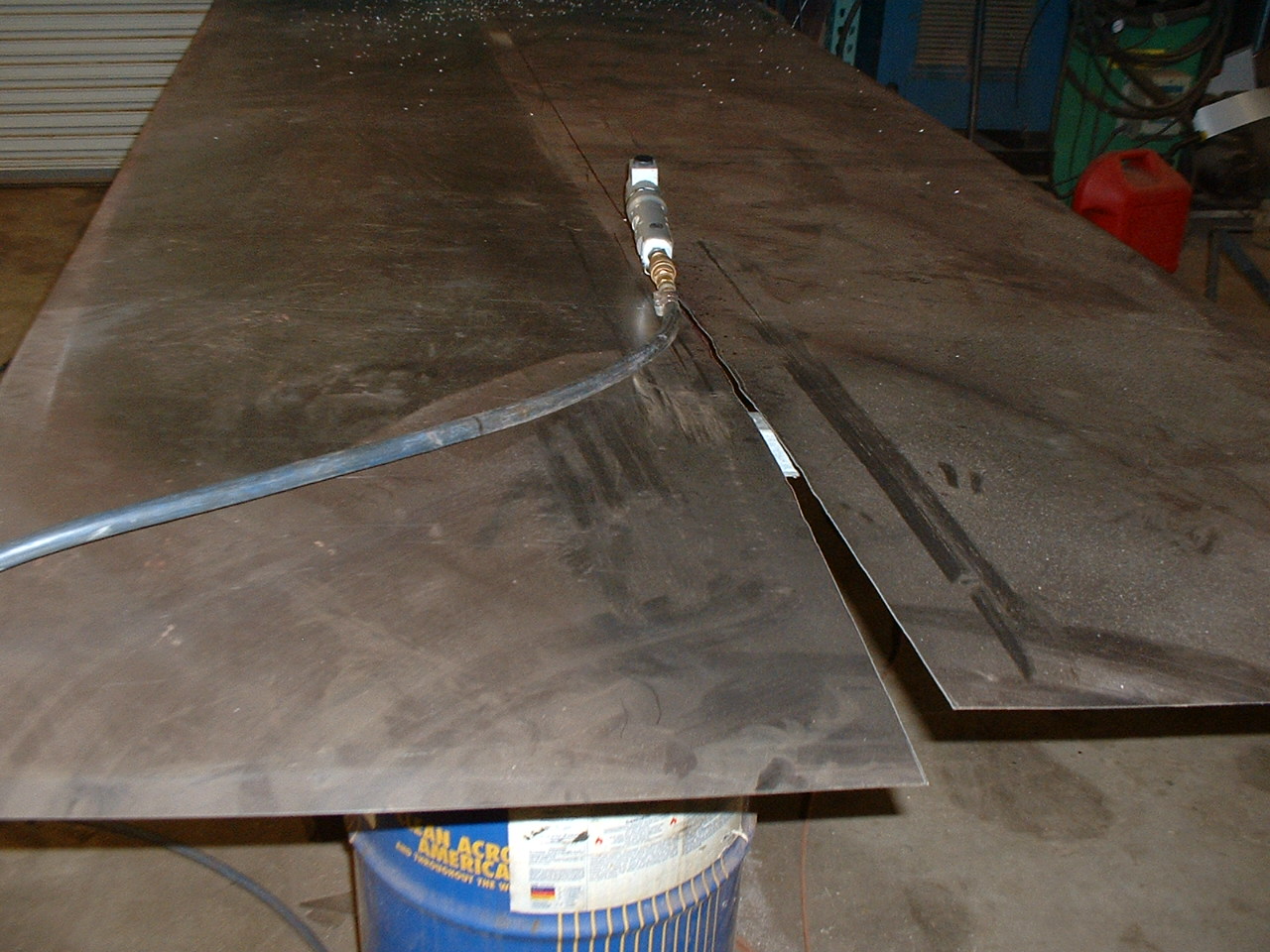The hood is slow going because I've had to fit and refit the sheet metal. After taking the metal on and off to trim it about twenty or so times I'm getting close. The dimensions are too bit large for my shear so I have to cut the metal using a nibbler and a straight edge. The setup works pretty good but the going is slow. I made up a heavy bar as a drill guide to keep the rivet hole spacing exact. Tomorrow I may be far enough along to begin riveting in the first panel.