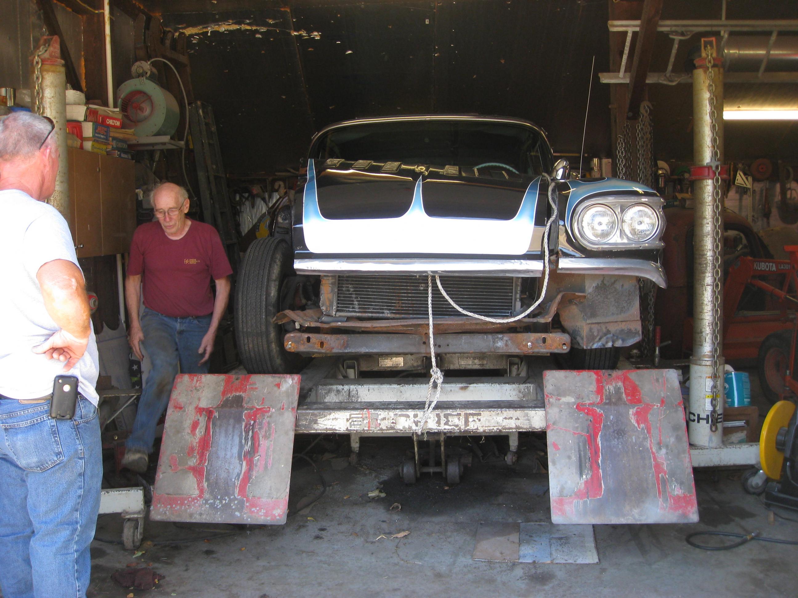 ok guys time for a lil update. skip readio (desoto)?? found me the parts i needed in new jersey, got them from the golden gup for a fantastic deal!! thanks guys. towed the car up to maine to pull the frame with christy massios (hottrodder3) best frame guy on the planet!! thanks christy!! and starting to put her back together!! stoked....