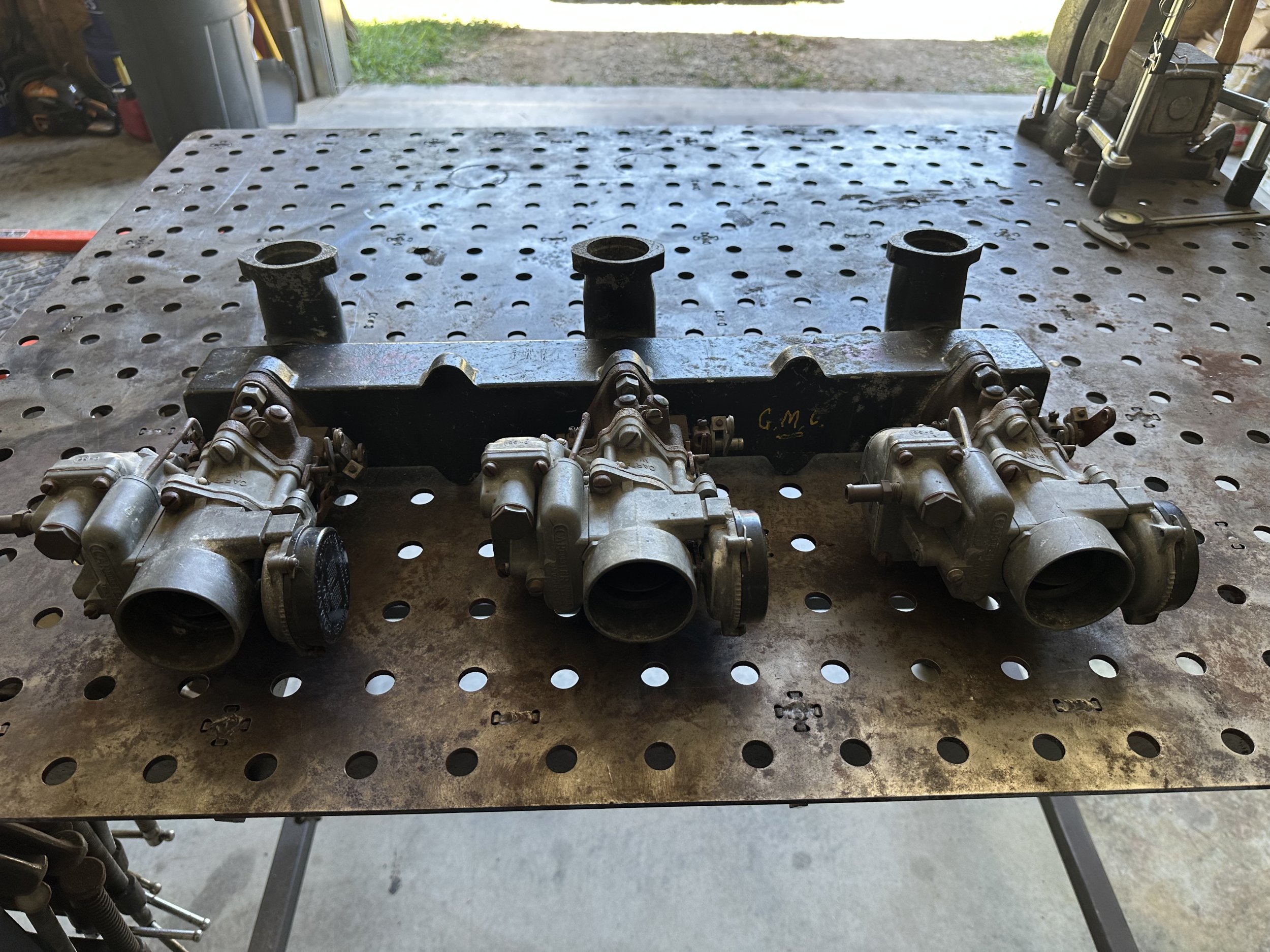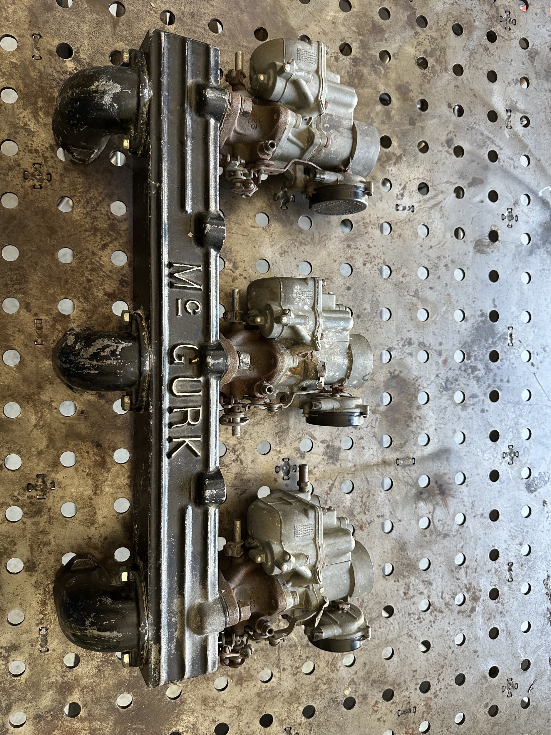 Original Mcgurk 3x1 for H head or 302 head GMC. Original 1950s paint comes with the original Carter carburetors excellent condition 750 shipd.