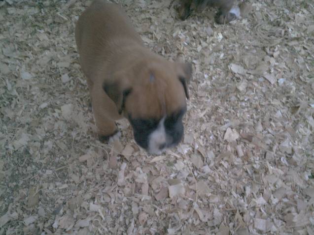 pup2.jpg ...first born she was.....so 5 weeks and 3 days after they're born he rolls into the shop.....i'm expecting the female, but he asked if i would take this big male...he was going to keep him, but figured he out grow his Peterbuilt.....