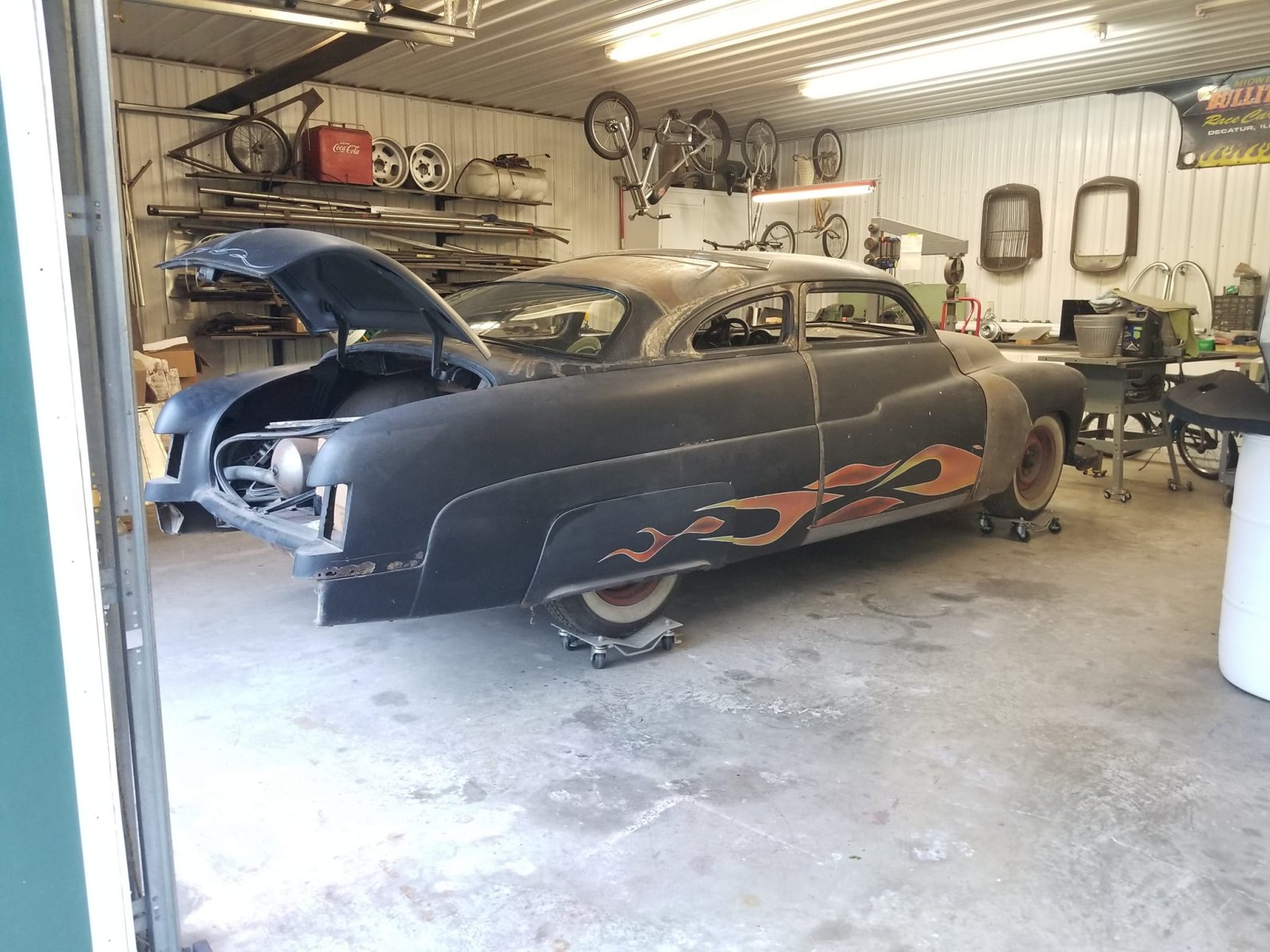 1951 Mercury, Chopped, frenched, nosed, decked, Desoto Grille, T-bird interior mercury laid out.jpg mercury grin.jpg mercury interior.jpg