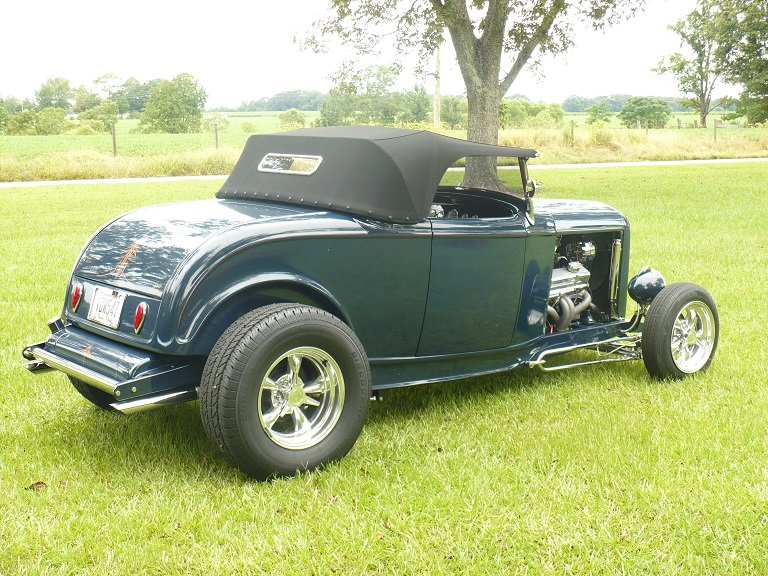 '37 Chevy. I used it because the spokes and rim are much narrower than a 1932 Ford, plus it has small stainless trim strips on each spoke. (Same Diameter)