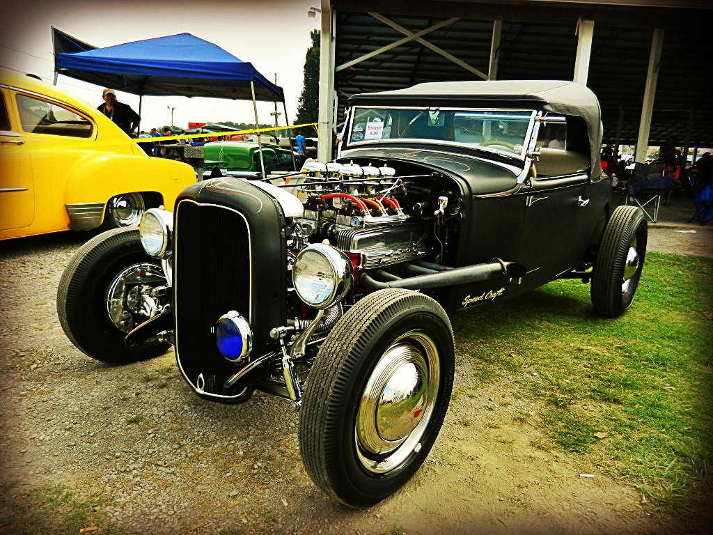 My buddy Rick (ricksherl here) asked if I'd submit this photo of his home built hot rod, taken at the Stray Kat 500 where he and his 89 year old father had just finished it. :)